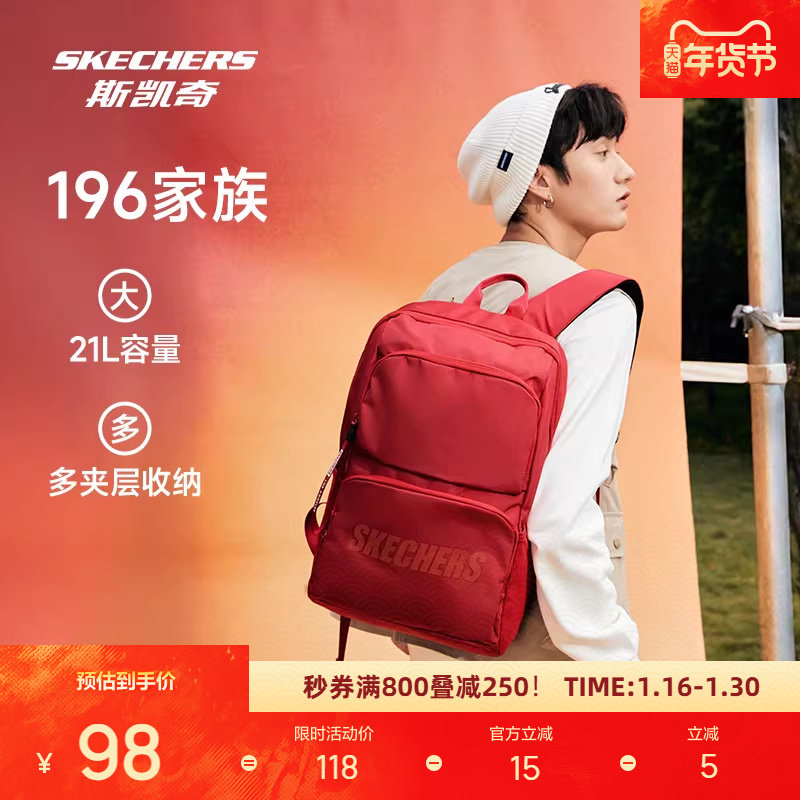 斯凯奇双肩包大容量简约旅行背包开学季百搭大学生运动休闲书包