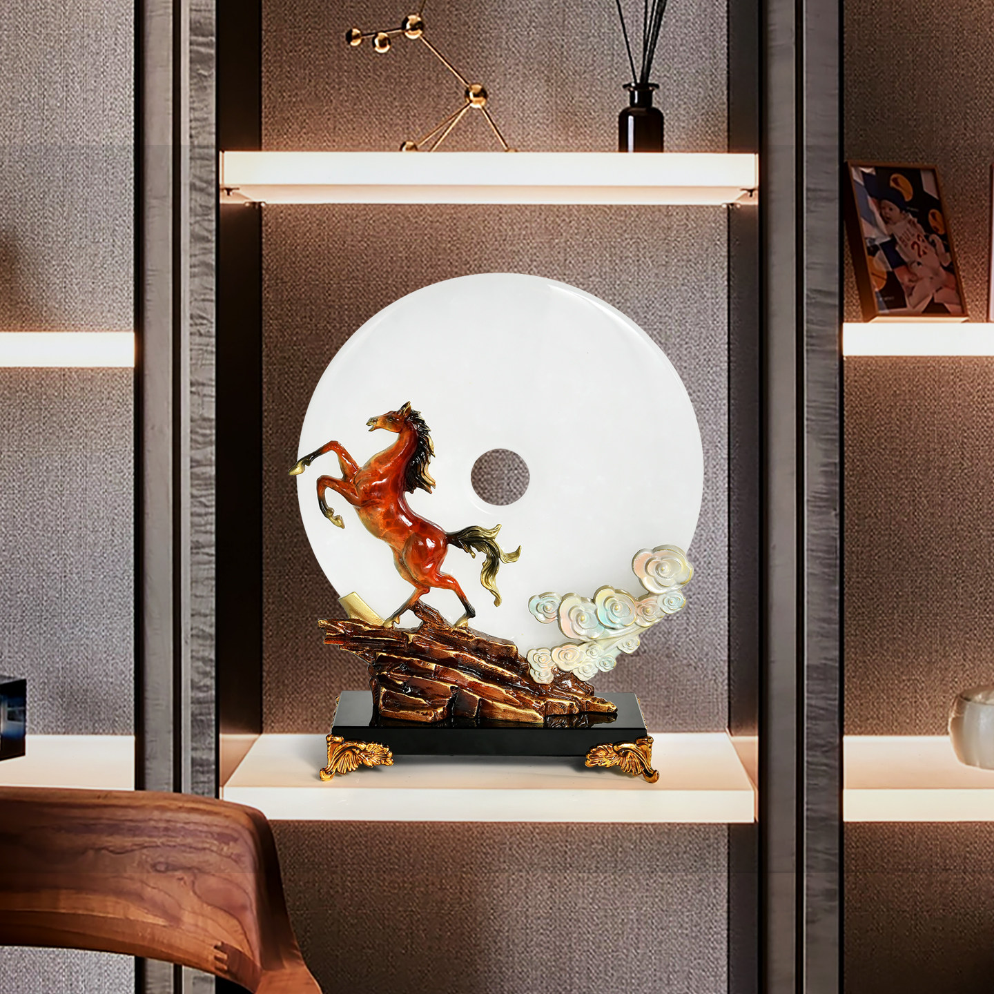 新中式玉石平安扣摆件飞黄腾达珐琅彩工艺轻奢高端家用乔迁送礼