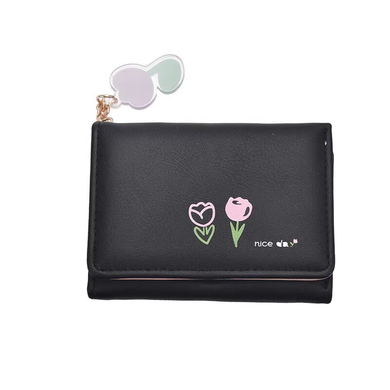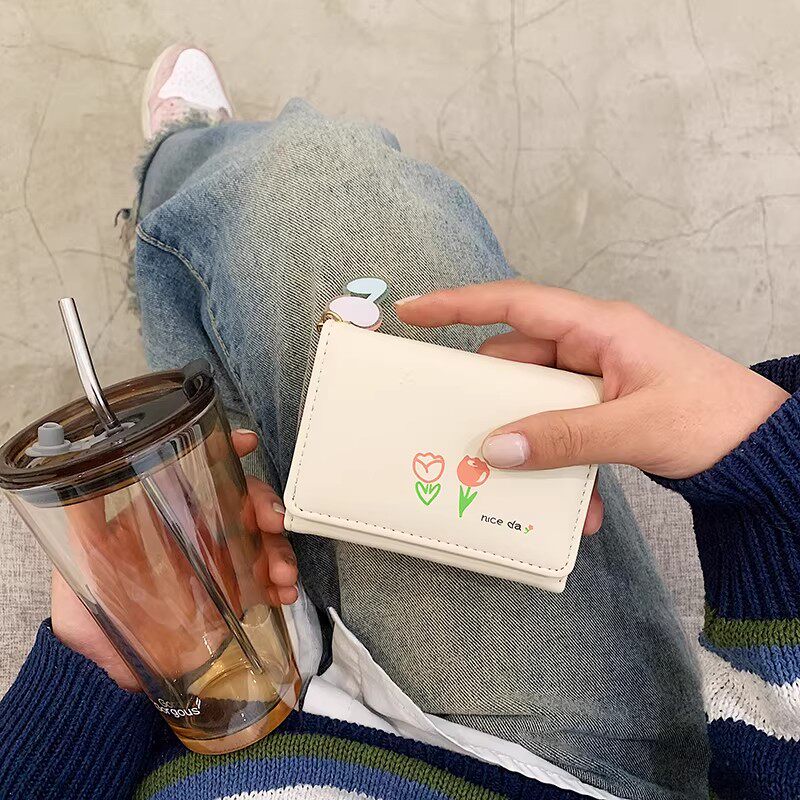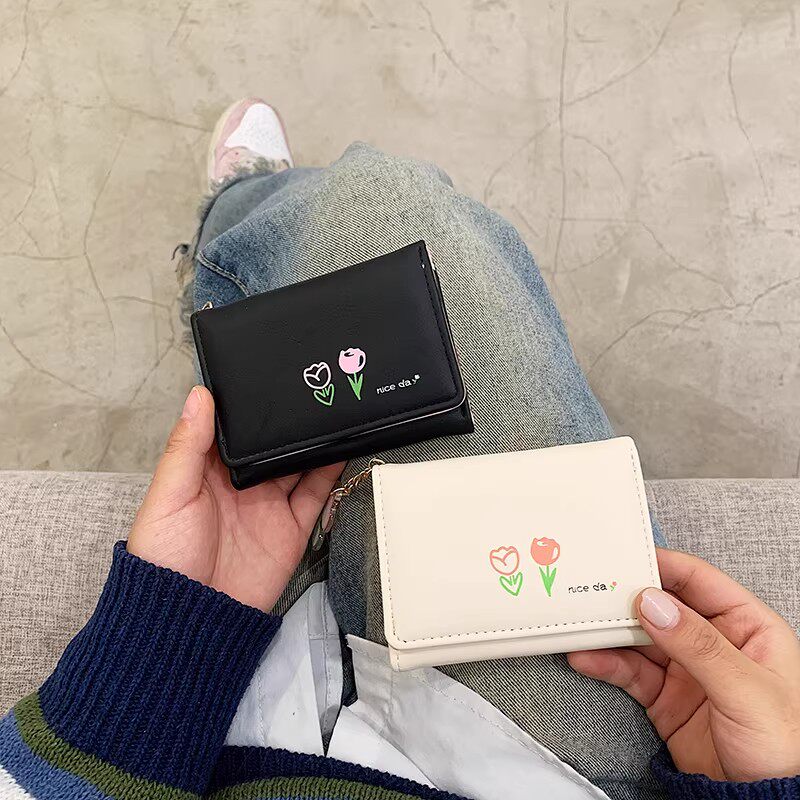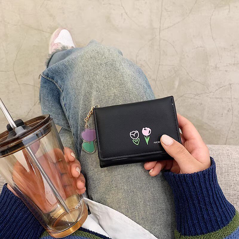 ins小钱包女短款三折纯色简约可爱学生搭扣折叠钱夹卡包证件零钱