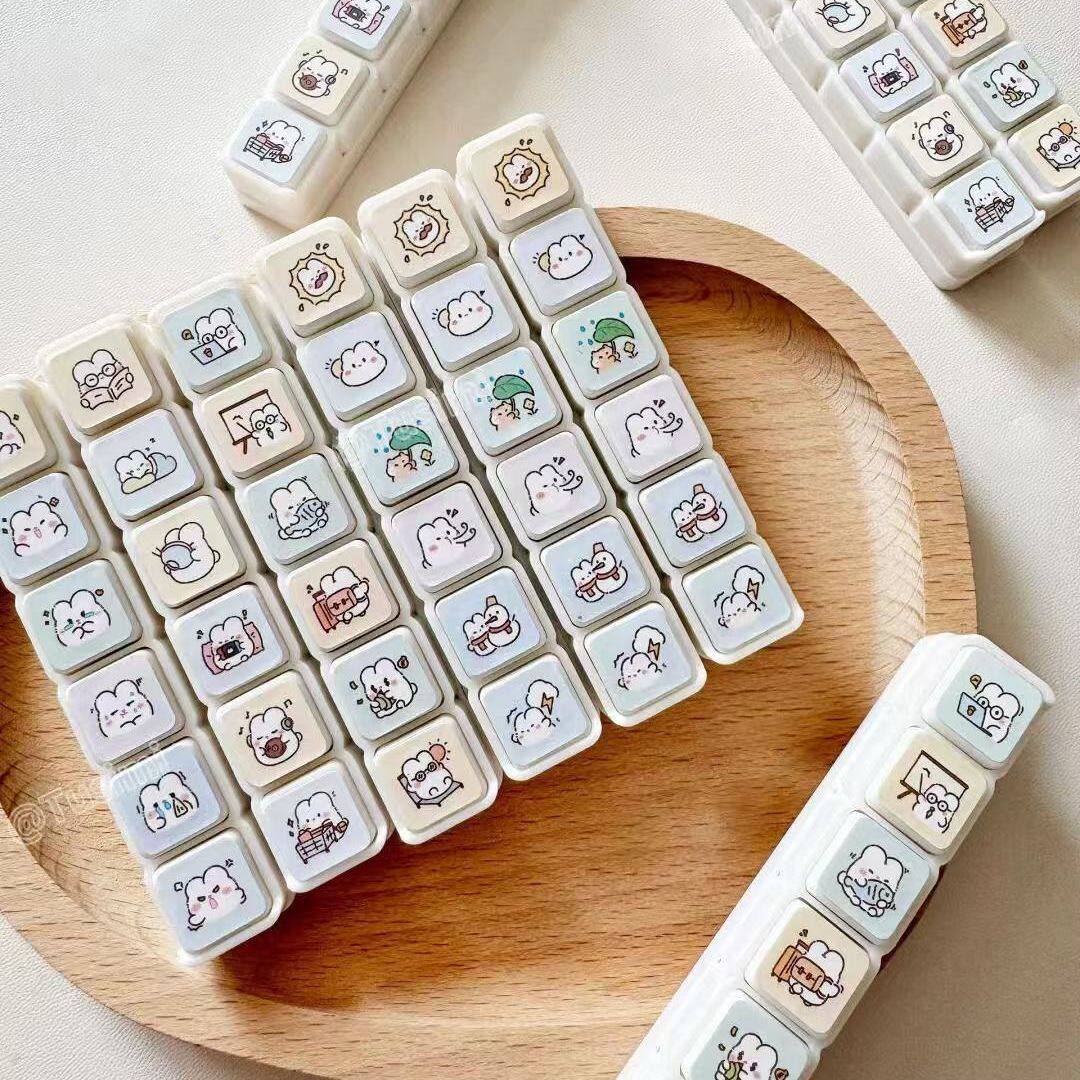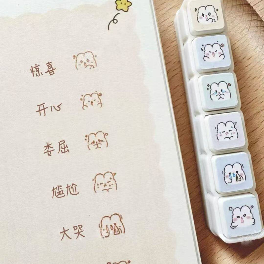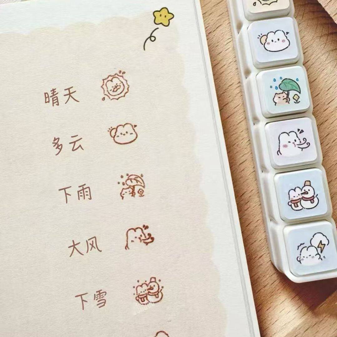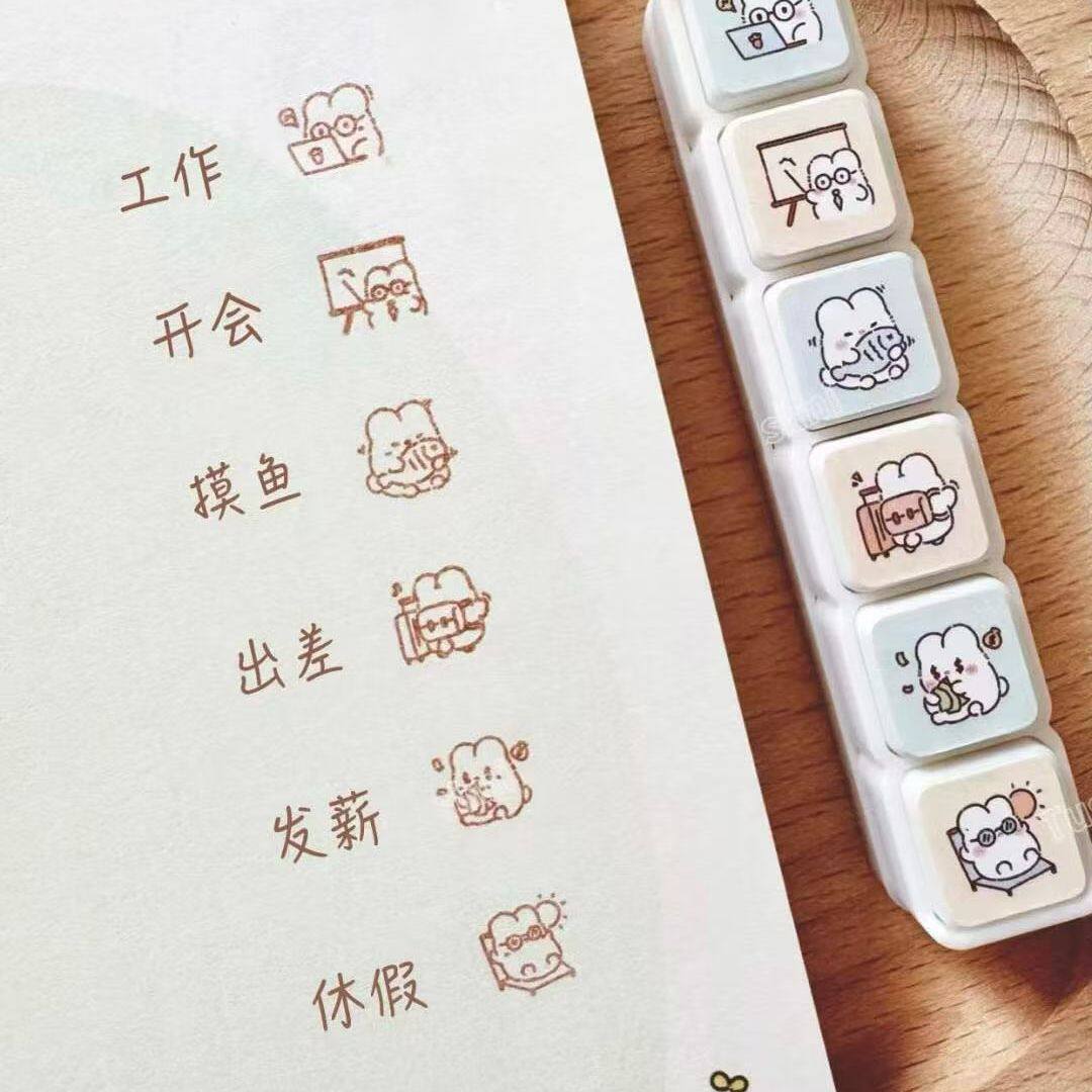 小红书同款可爱兔兔六联印章打工人天气日常学生手账本装饰素材