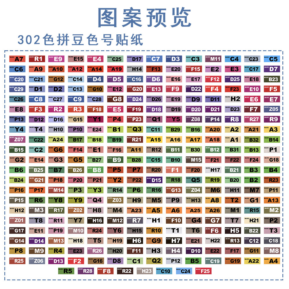 302色号色卡全套色系拼豆便签贴纸MARD长方形补充豆色卡标签贴