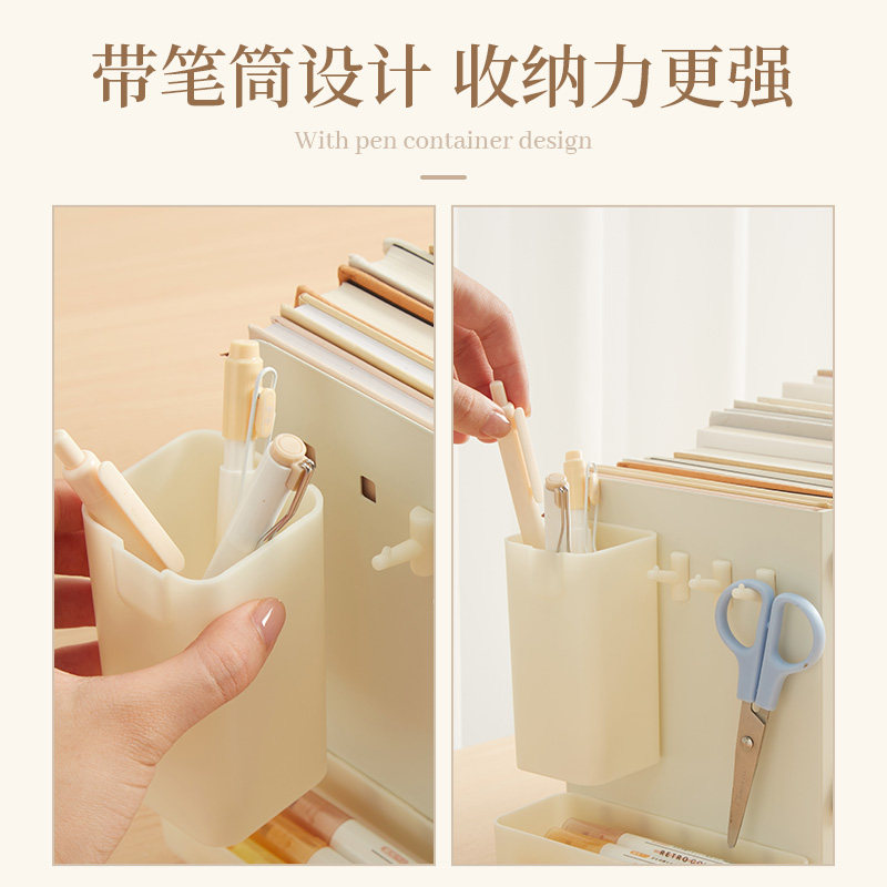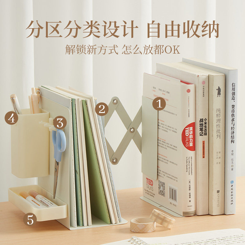 三年二班 可伸缩书立带笔筒书立架桌面置物架书本收纳架挡板书夹折叠固定书本立架学生用桌上立书架放书神器
