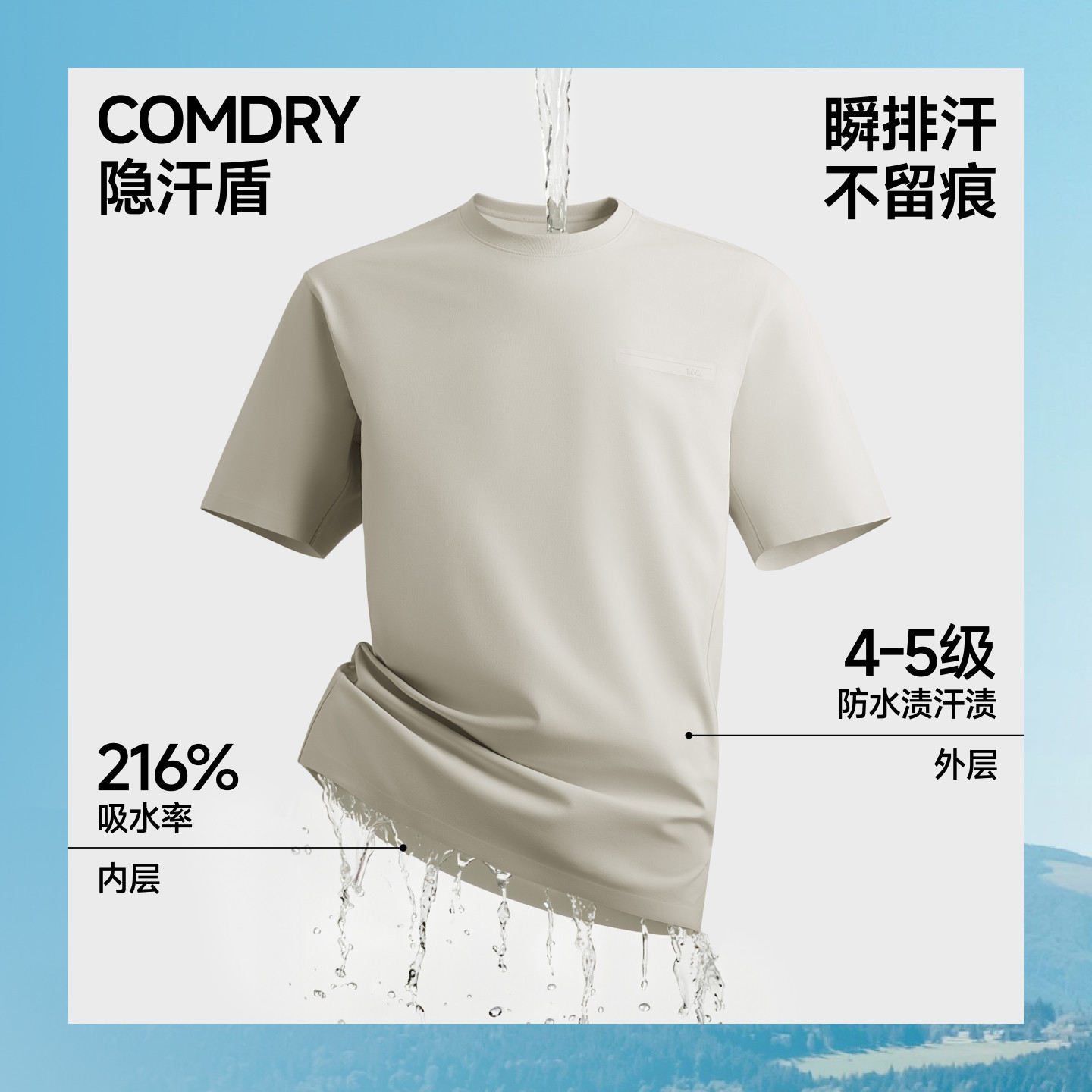 蕉下男士短袖T恤防汗渍立裁T恤DR020夏季打底衫上衣夏装透气速干