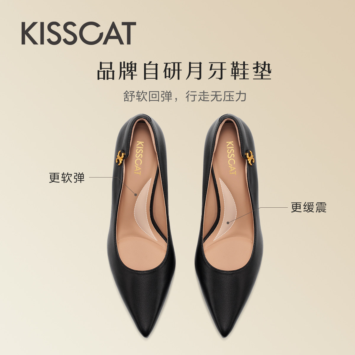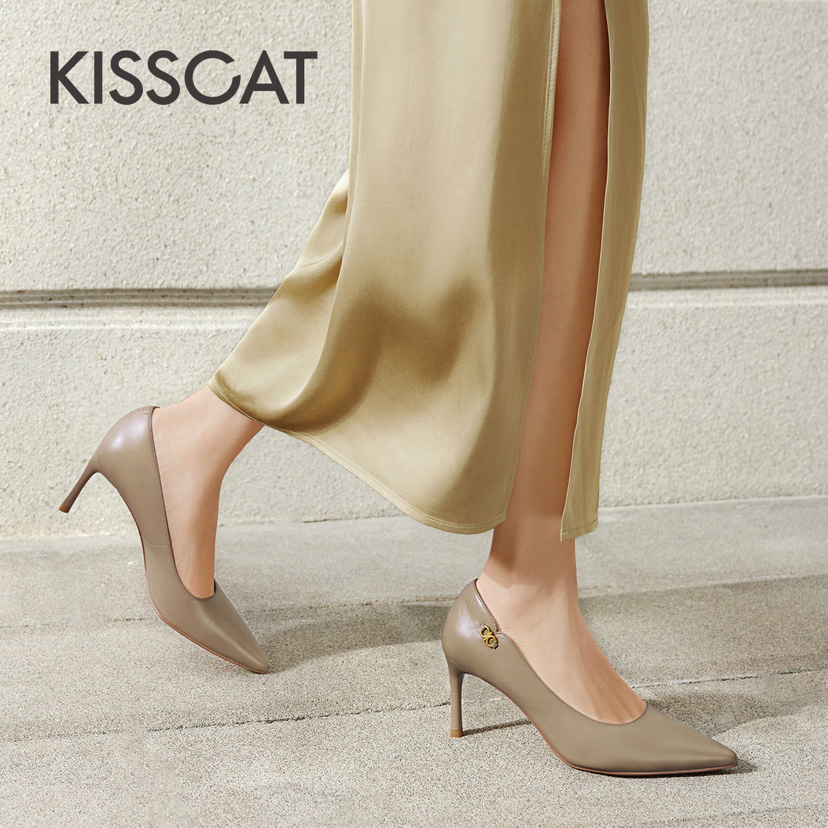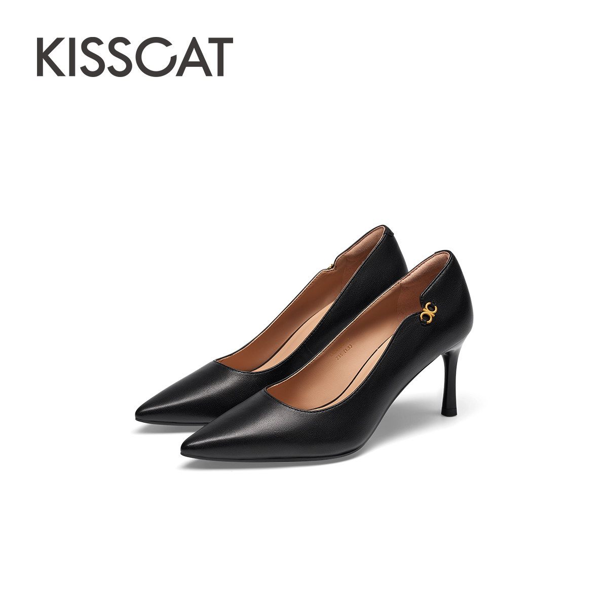 KISSCAT接吻猫秋季新款优雅气质高跟鞋尖头细跟简约单鞋女