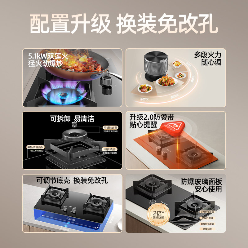 [政府补贴]万和燃气灶煤气双灶天然气液化气台嵌入式家用炉具C3