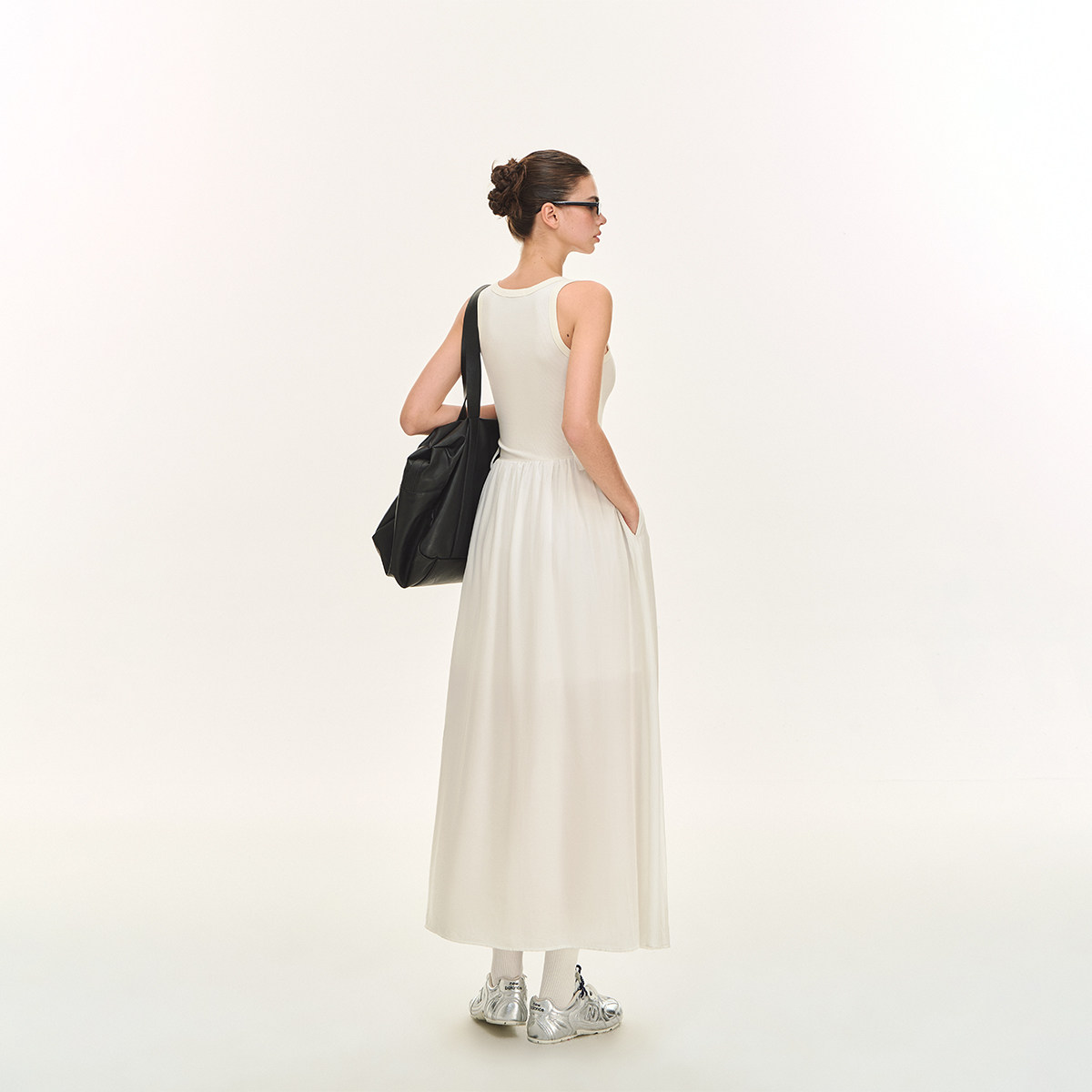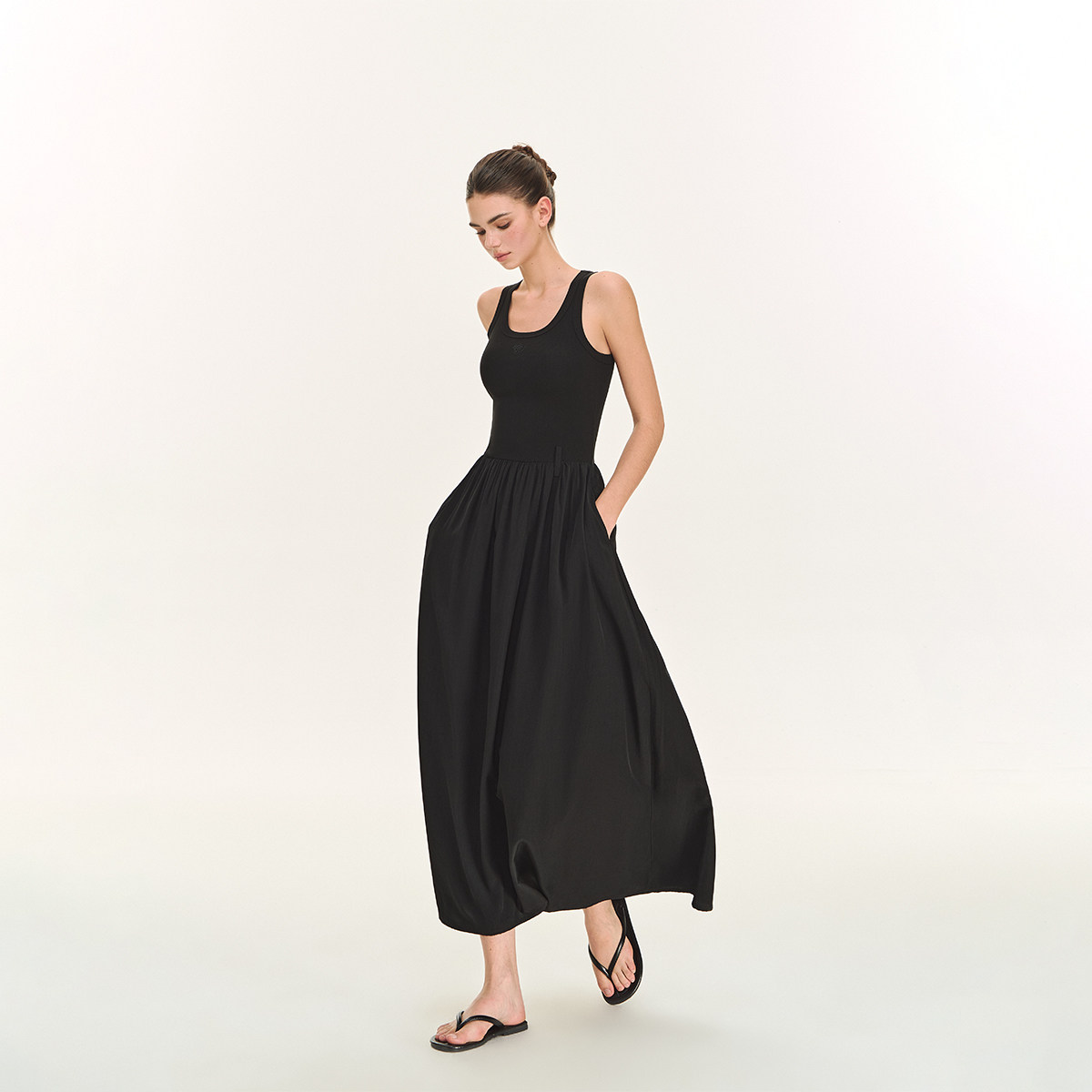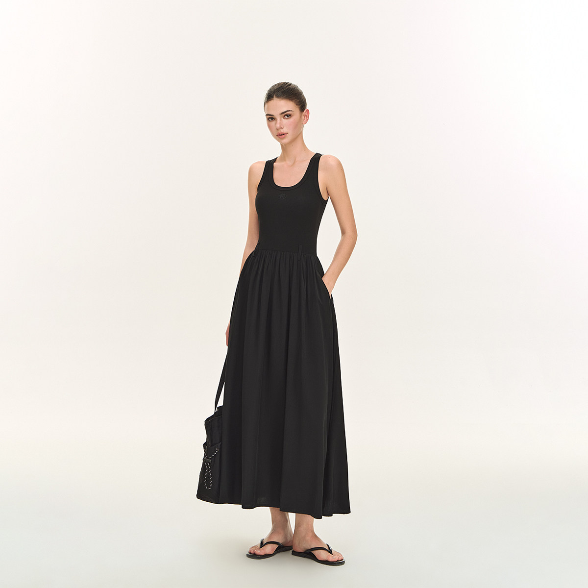 CLIMAX VISION清凉松弛度假风收腰显瘦弹力U领无袖背心连衣裙长裙