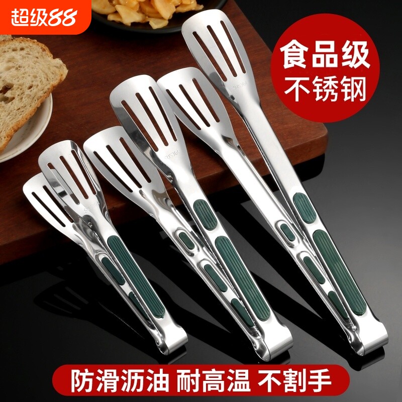 特厚不锈钢304食品夹厨房食物烧烤加厚面包家用牛排烘焙烤肉用具