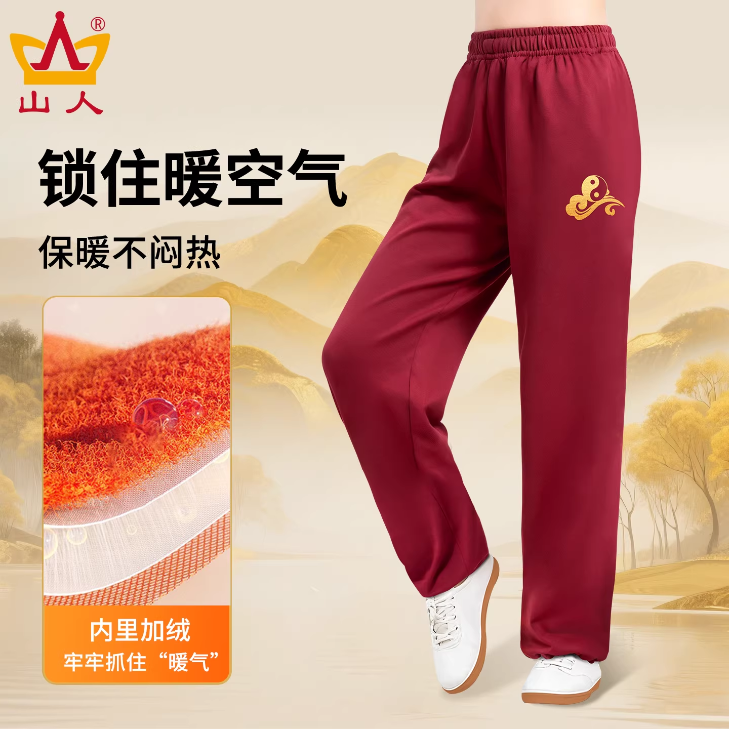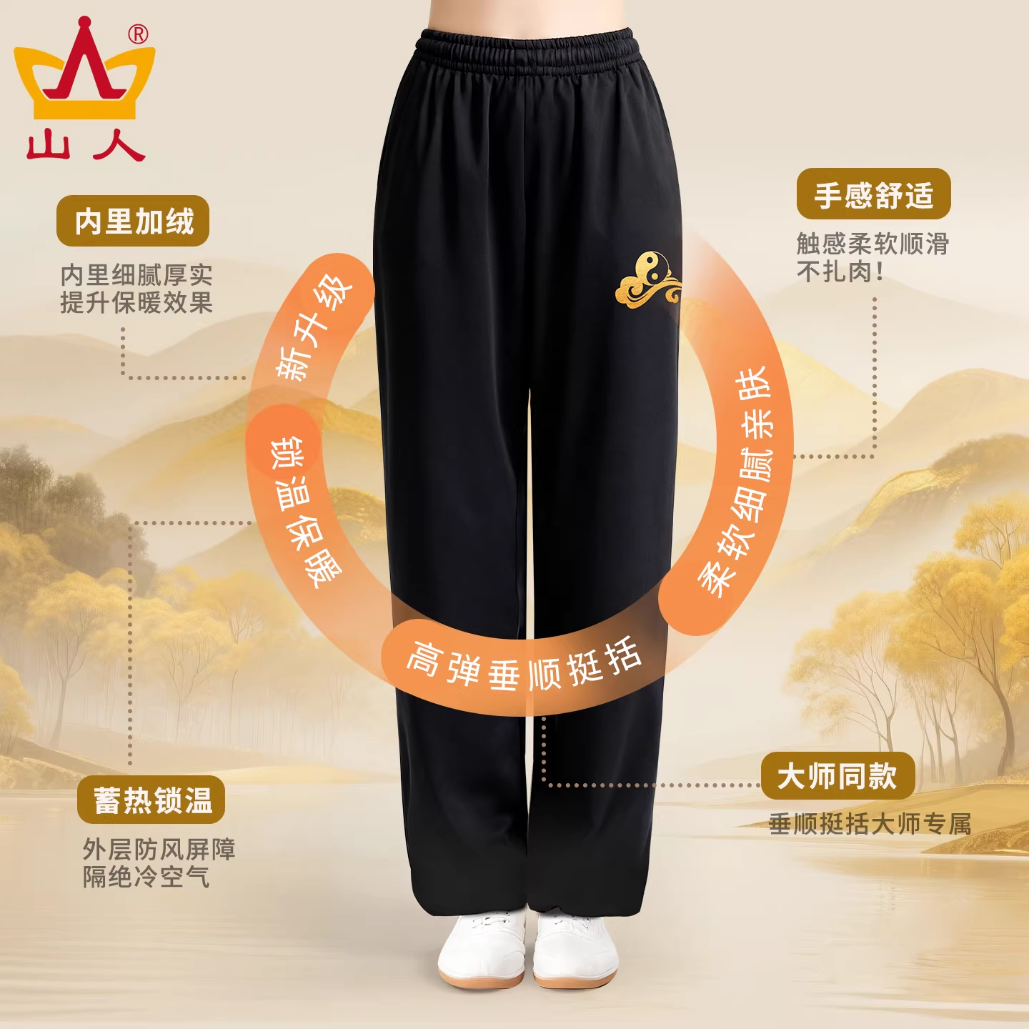 新款牛奶丝太极裤女秋冬加绒加厚练功裤太极服男士武术灯笼裤宽松