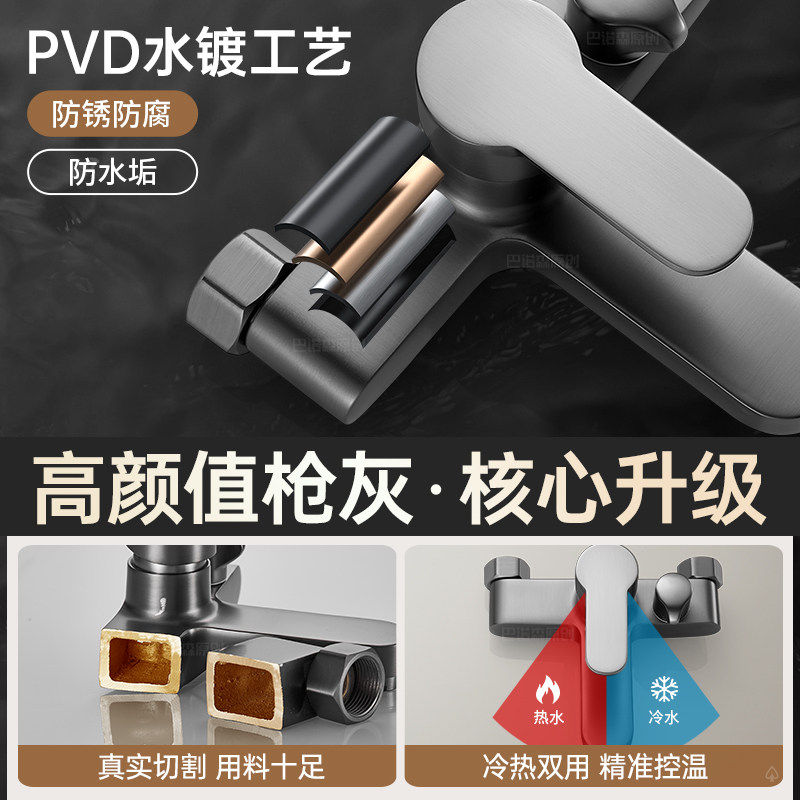 淋浴龙头全铜混水阀花洒沐浴套装浴室浴缸混合开关三联冷热水龙头