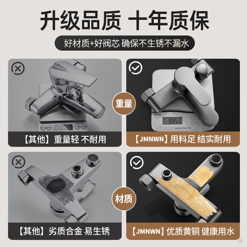 通用型全铜冷热淋浴龙头电热水器混水阀暗装三联浴缸龙头花洒套装