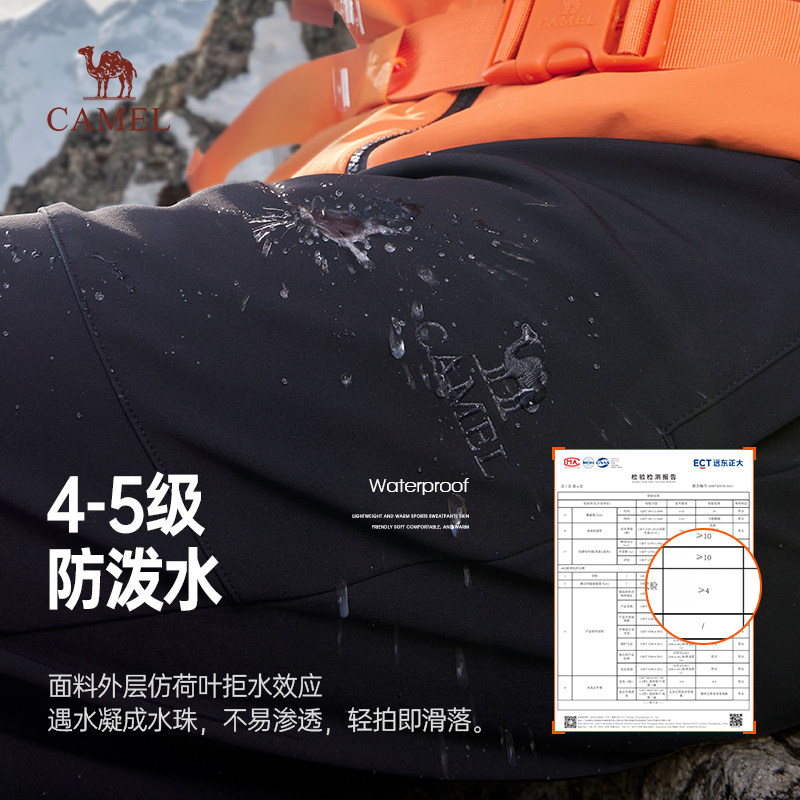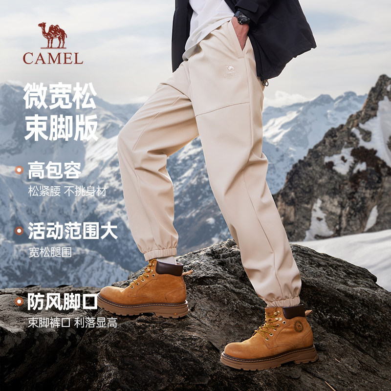 骆驼男装休闲长裤男士秋冬季2025加绒保暖运动防泼水软壳裤子