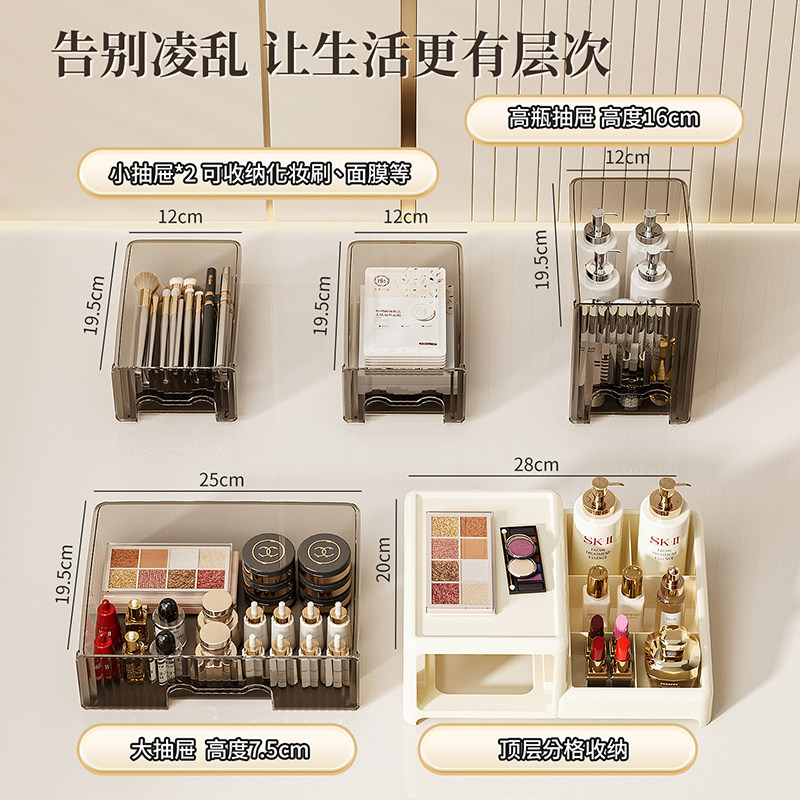 化妆品收纳盒桌面防尘抽屉式高级感口红整理箱梳妆台护肤品置物架