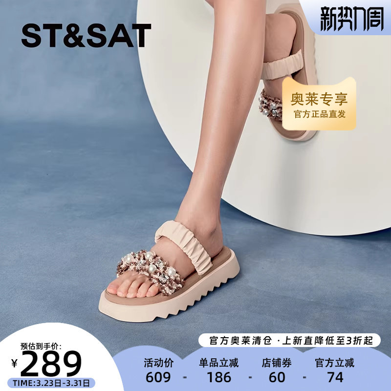星期六优雅时尚女鞋简约夏季款平底低跟凉拖鞋气质凉鞋SSC2110301