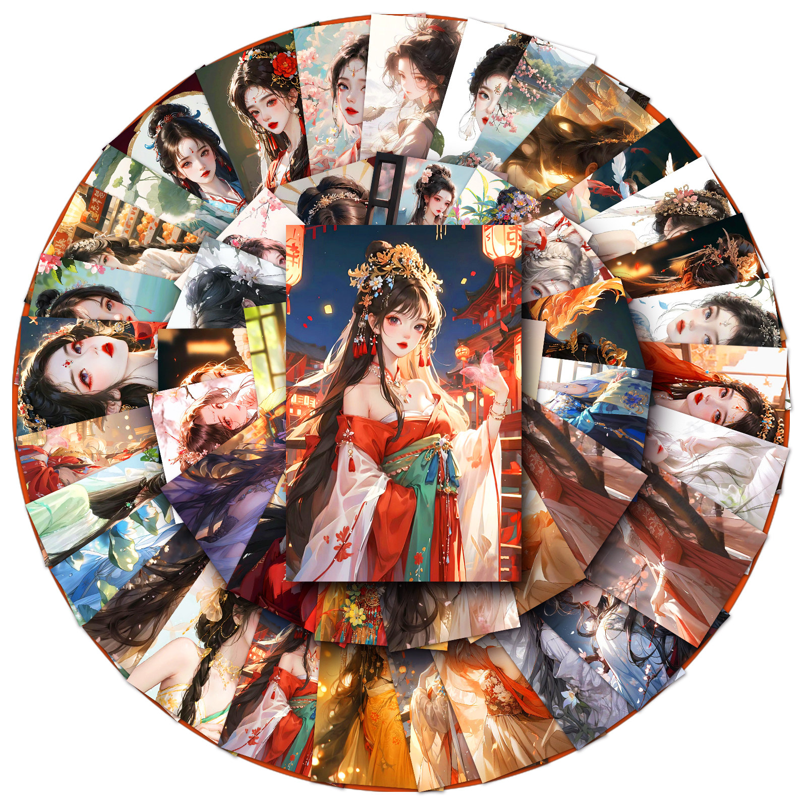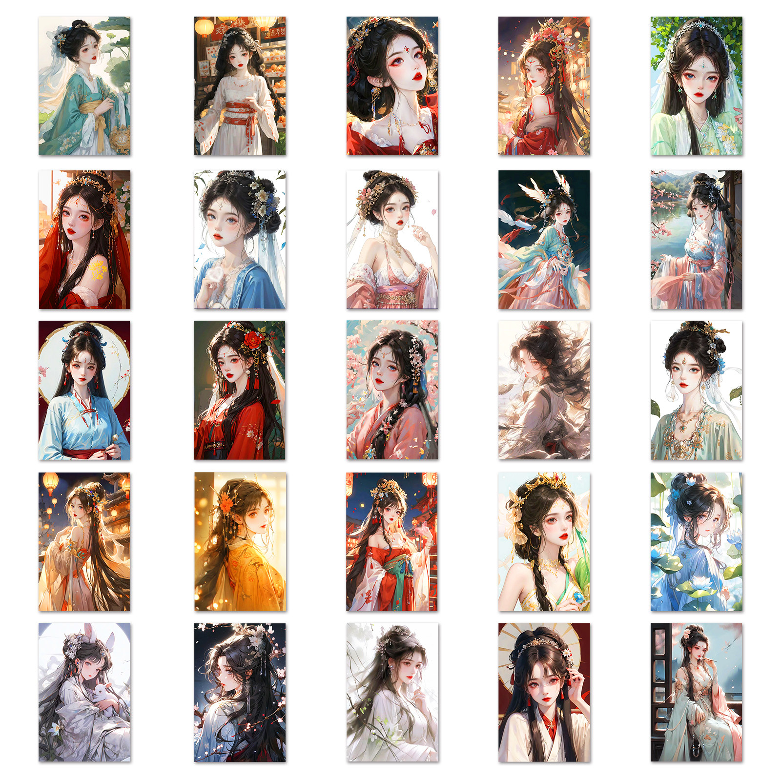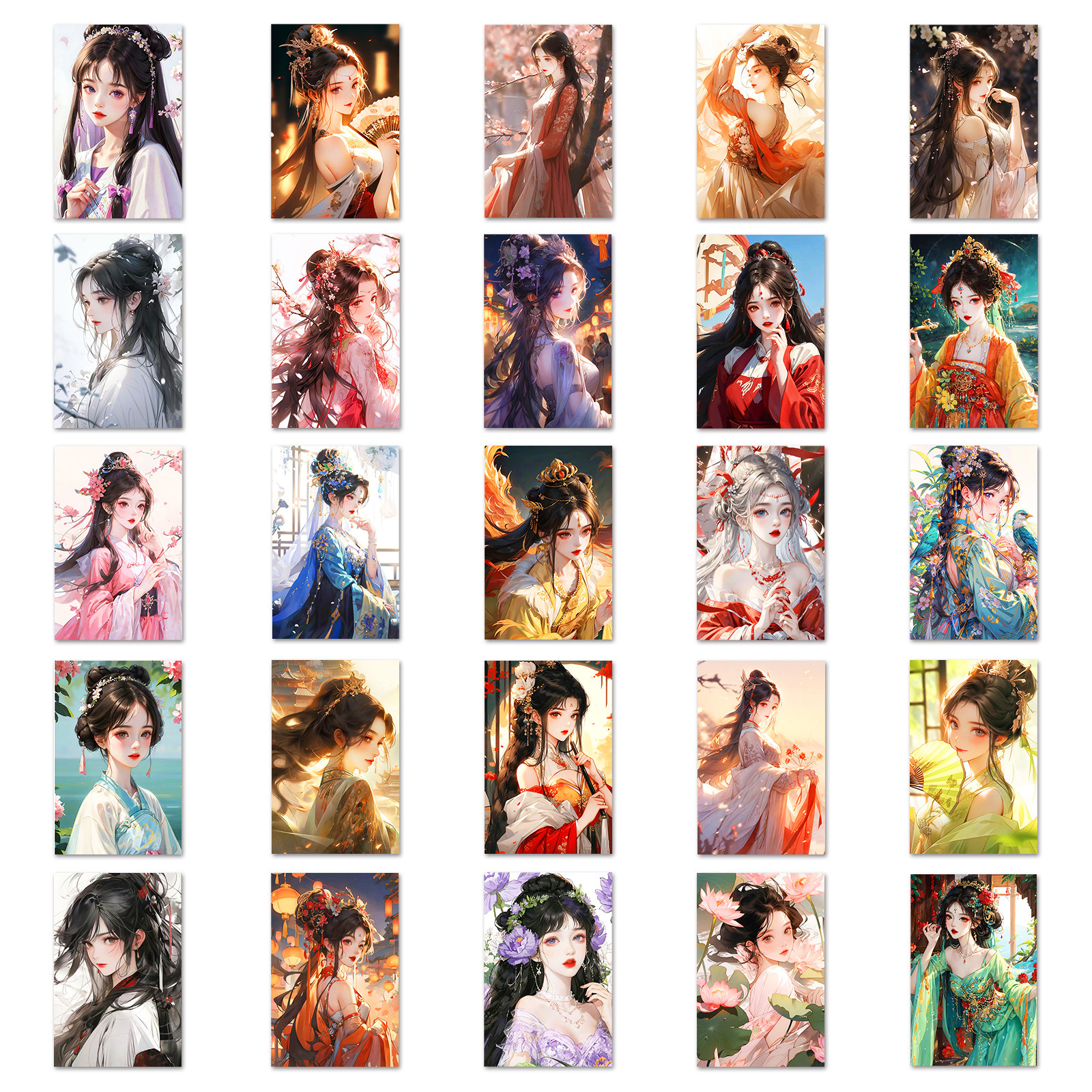 100张古风少女自行车手机壳旅行箱汽车摩托旅行箱个性创意防水二次元头像女孩中国风千金不干胶涂鸦装饰贴纸