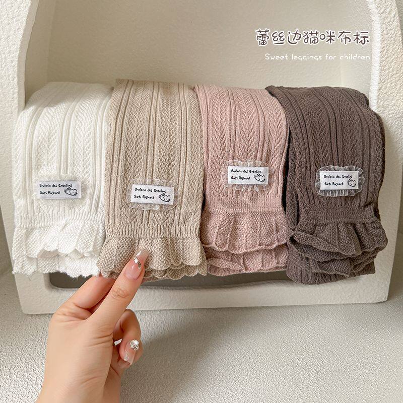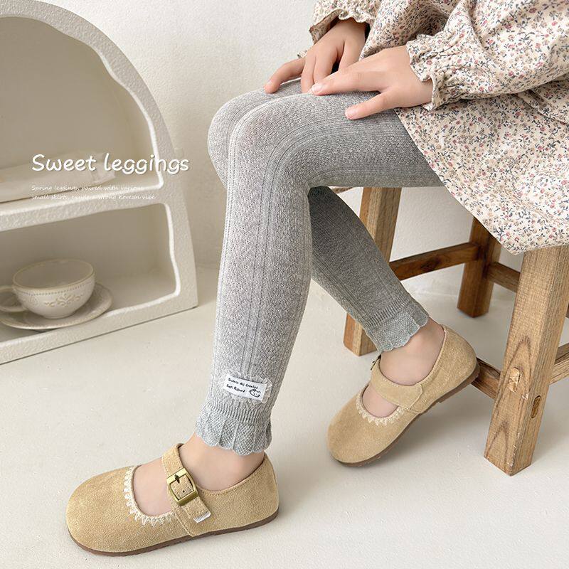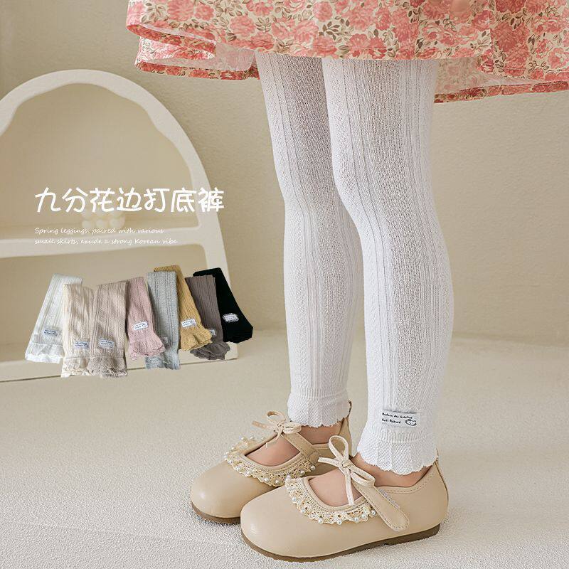 婴童打底裤女童春秋薄款精梳棉亲肤儿童九分裤洋气宝宝提花边裤子