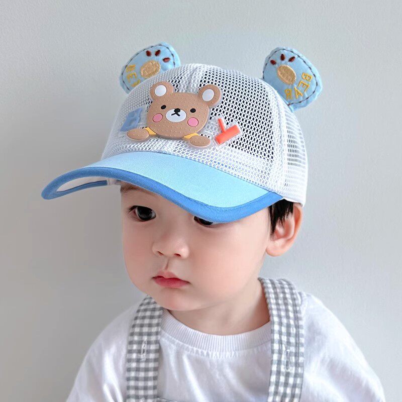 儿童防晒帽夏季男童遮阳帽宝宝帽子男孩鸭舌帽网格太阳帽棒球婴童