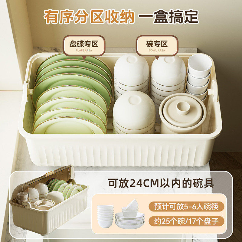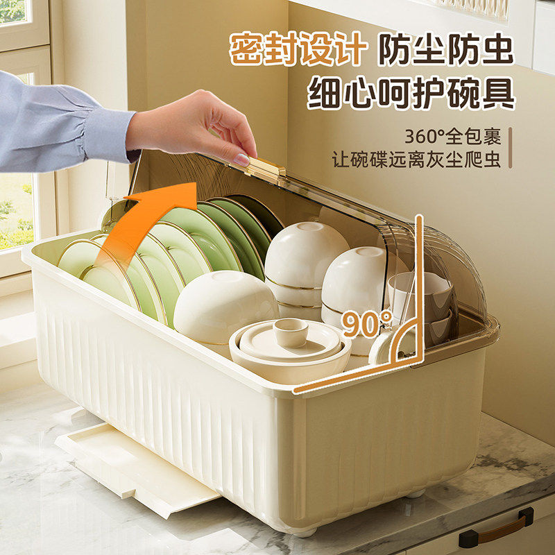 碗筷收纳盒带盖放餐具装盘子的置物架家用厨房沥水碗柜塑料储物箱