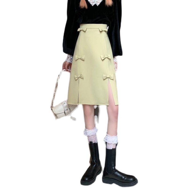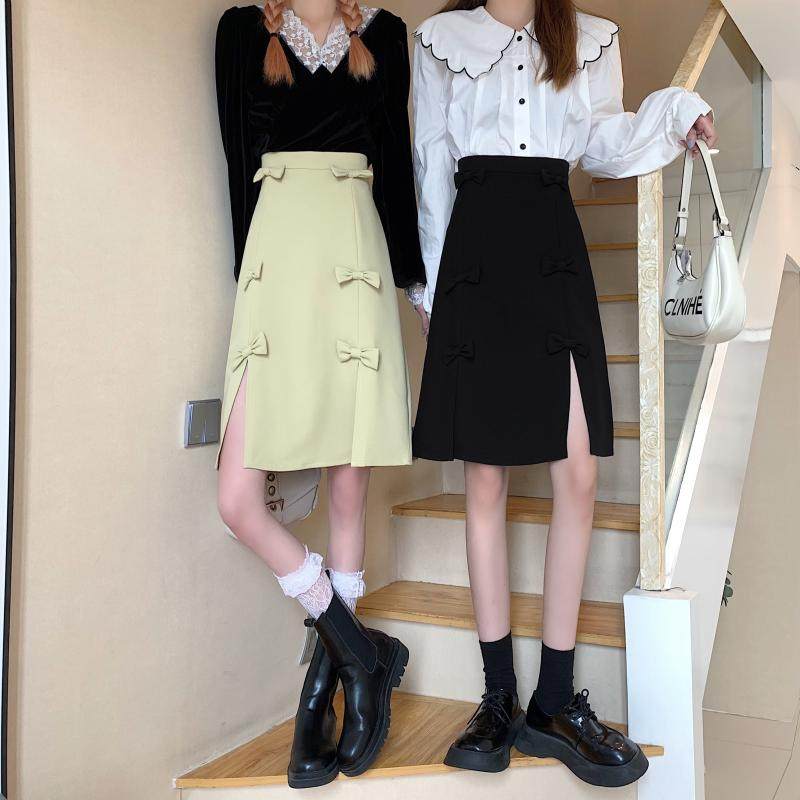 大码蝴蝶节设计感开叉半身裙女夏胖mm显瘦遮胯a字中裙黑色包臀裙