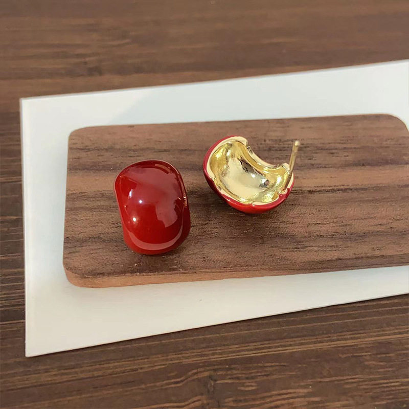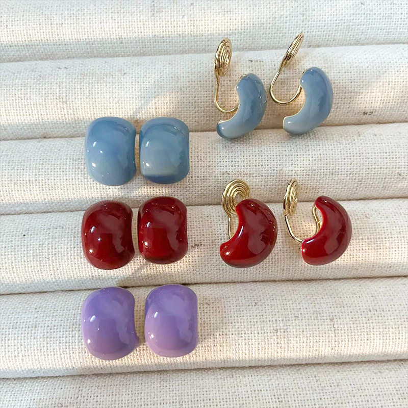 小糖豆红色滴油无耳洞蚊香盘耳夹清新甜美温柔气质彩色C型耳环女