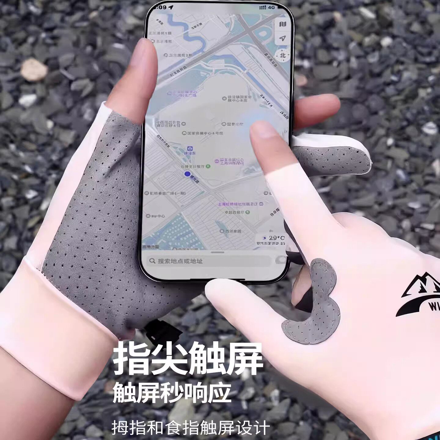 防晒手套女防紫外线冰丝露二指夏季户外电动车骑行开车手套女薄款
