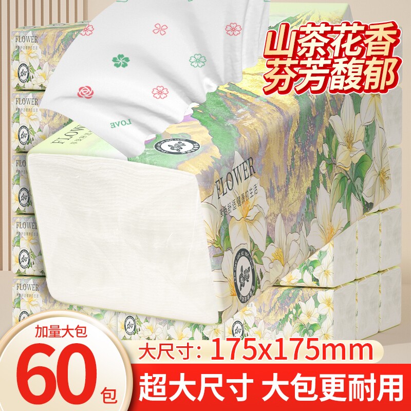 60大包山茶花香抽纸家用实惠装卫生纸大尺寸面巾纸餐巾纸抽整箱装