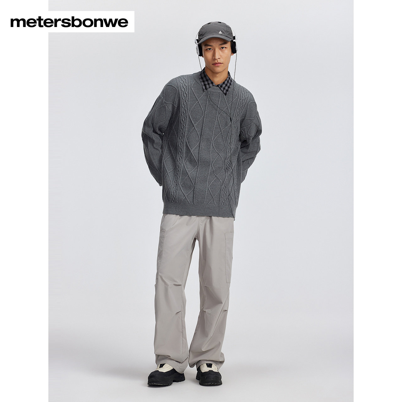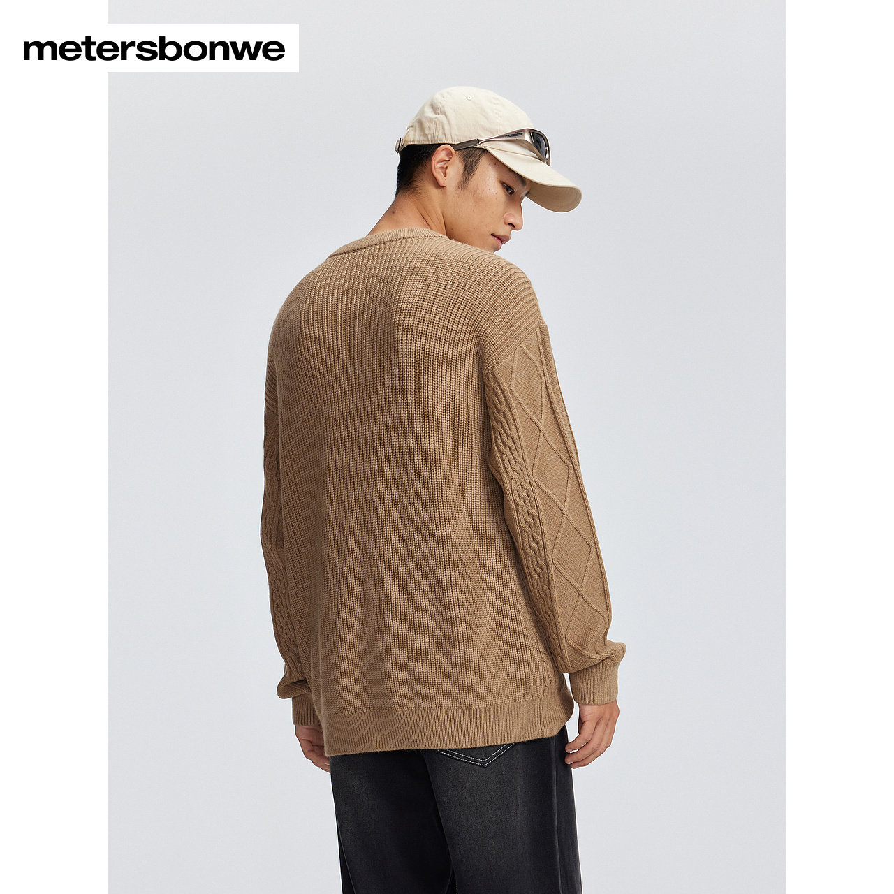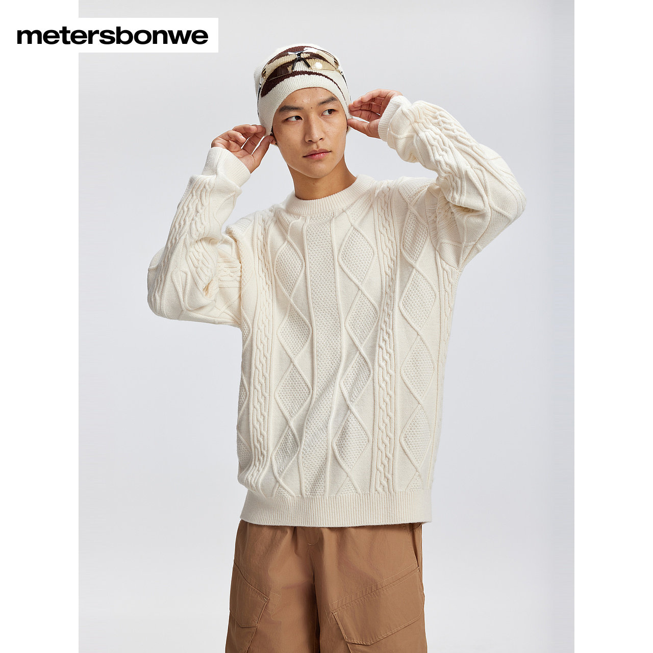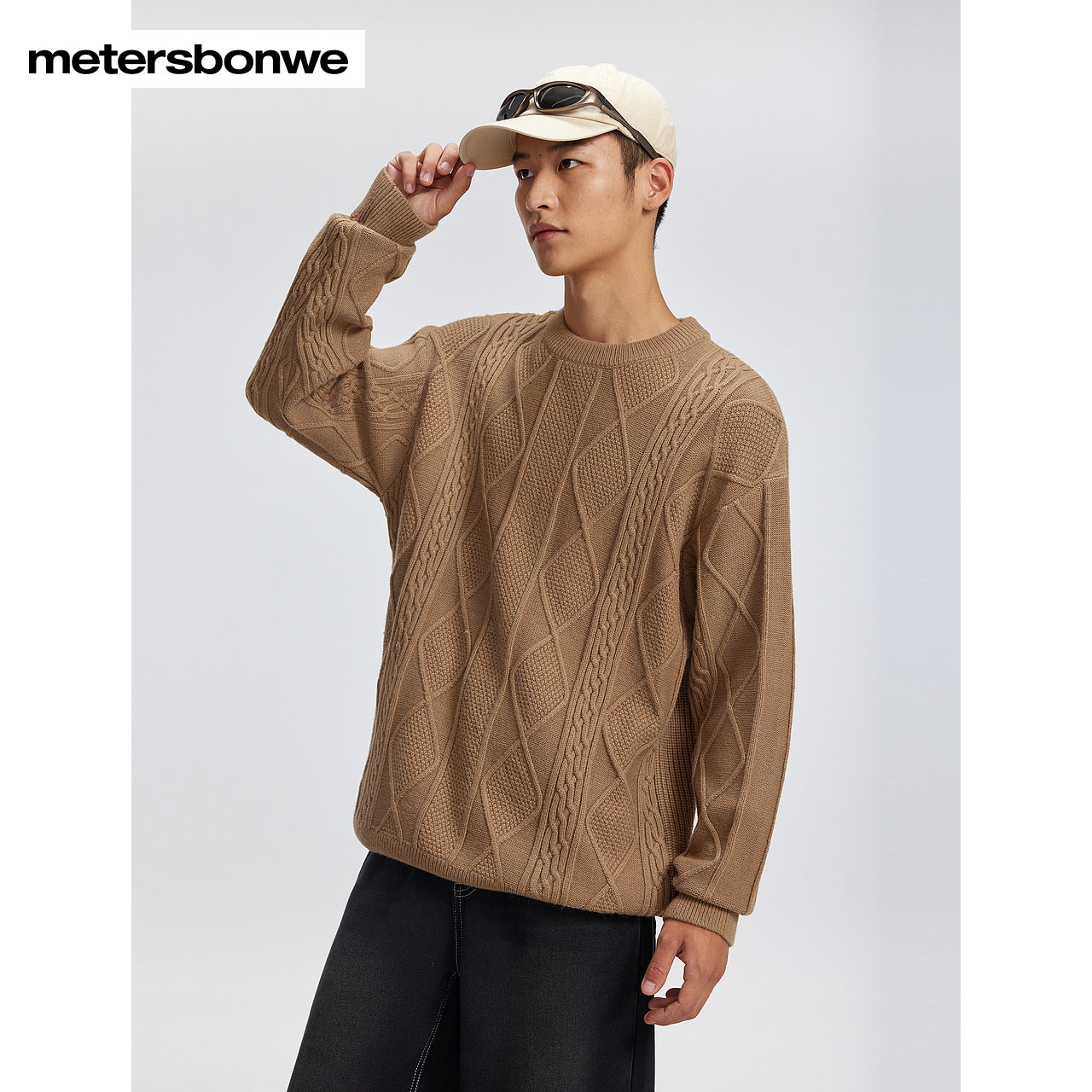 美特斯邦威绞花毛衫男士冬季新款百搭休闲宽松纯色毛衣上衣男
