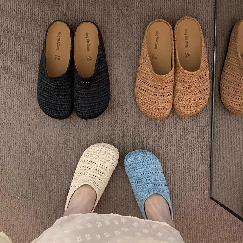 厚底波西米亚勃肯鞋女外穿2026春秋度假一脚蹬包头半拖单鞋编织