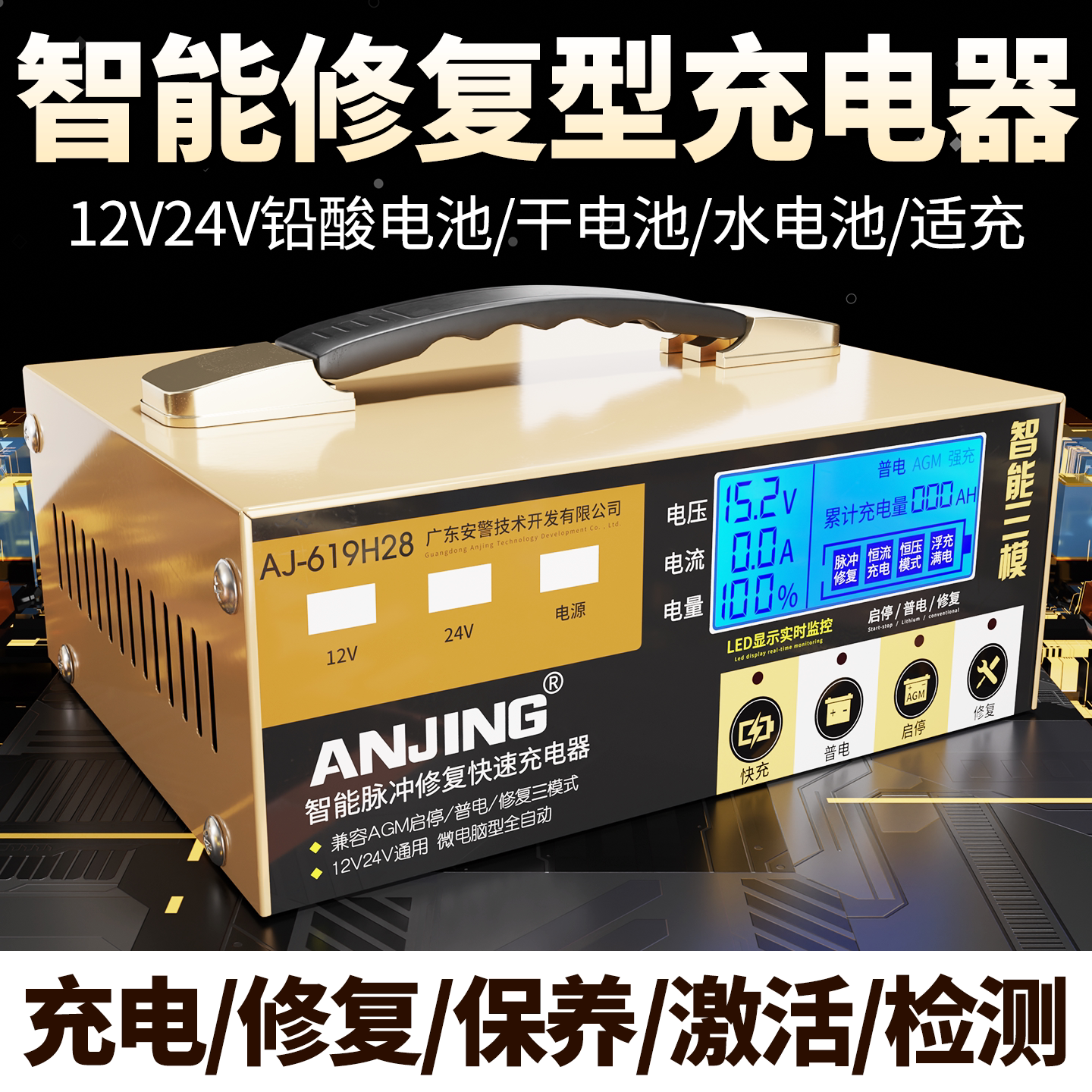 汽车电瓶充电器12v24通用智能修复充满自停大功率启停铅酸蓄电池