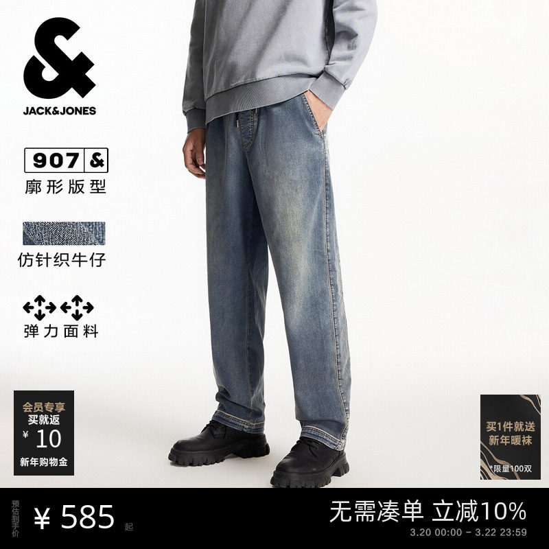 【弹力】杰克琼斯男装春季牛仔裤长裤子做旧水洗简约休闲百搭廓形
