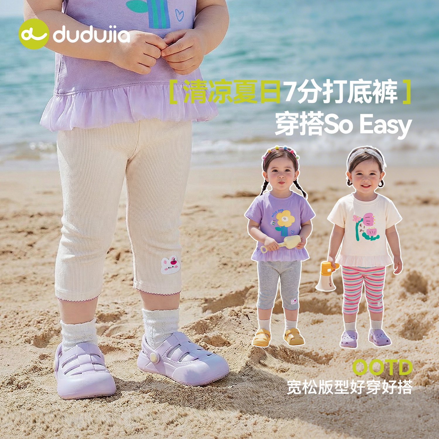 嘟嘟家宝宝打底裤女童裤子夏薄款儿童七分裤清凉可爱女宝卡通夏装