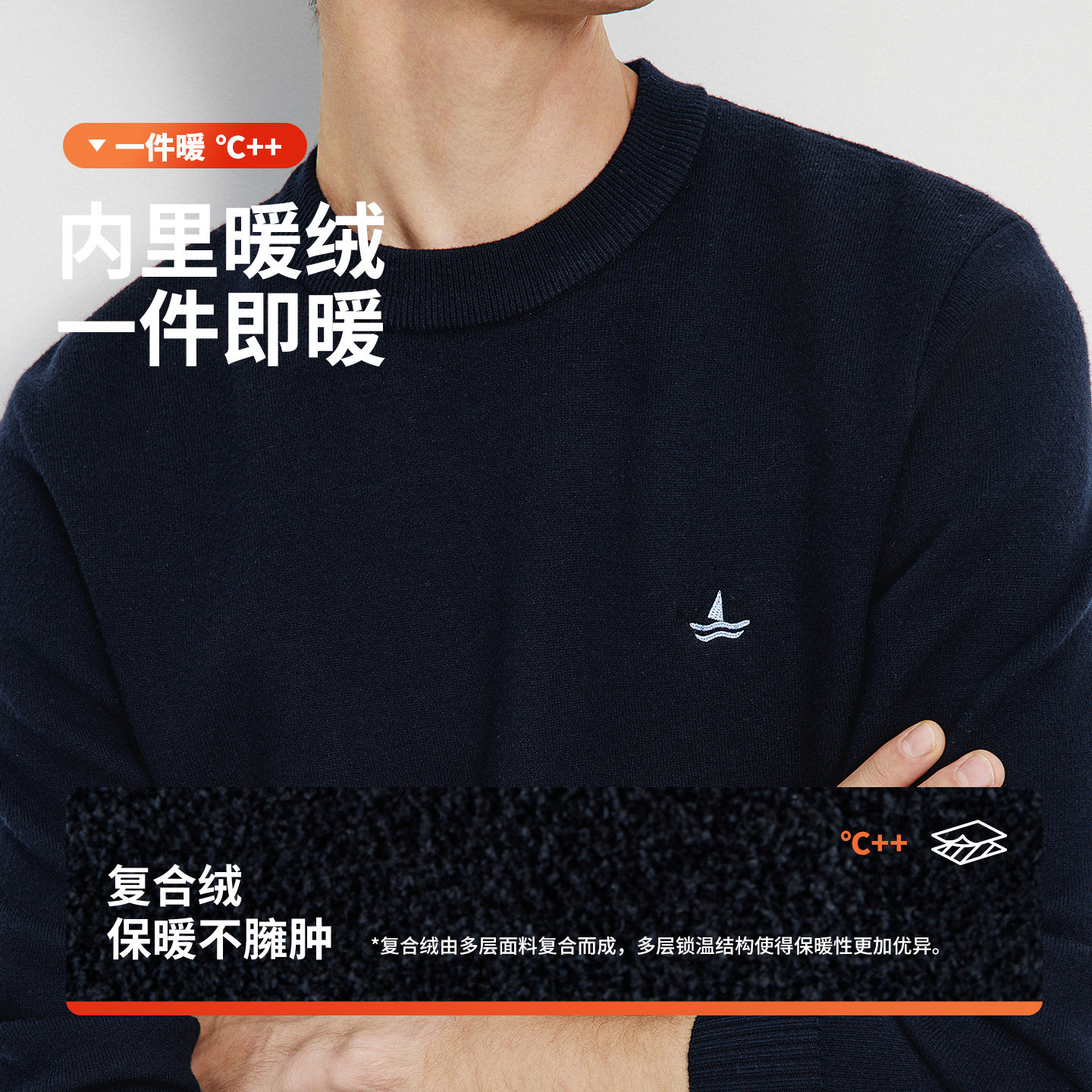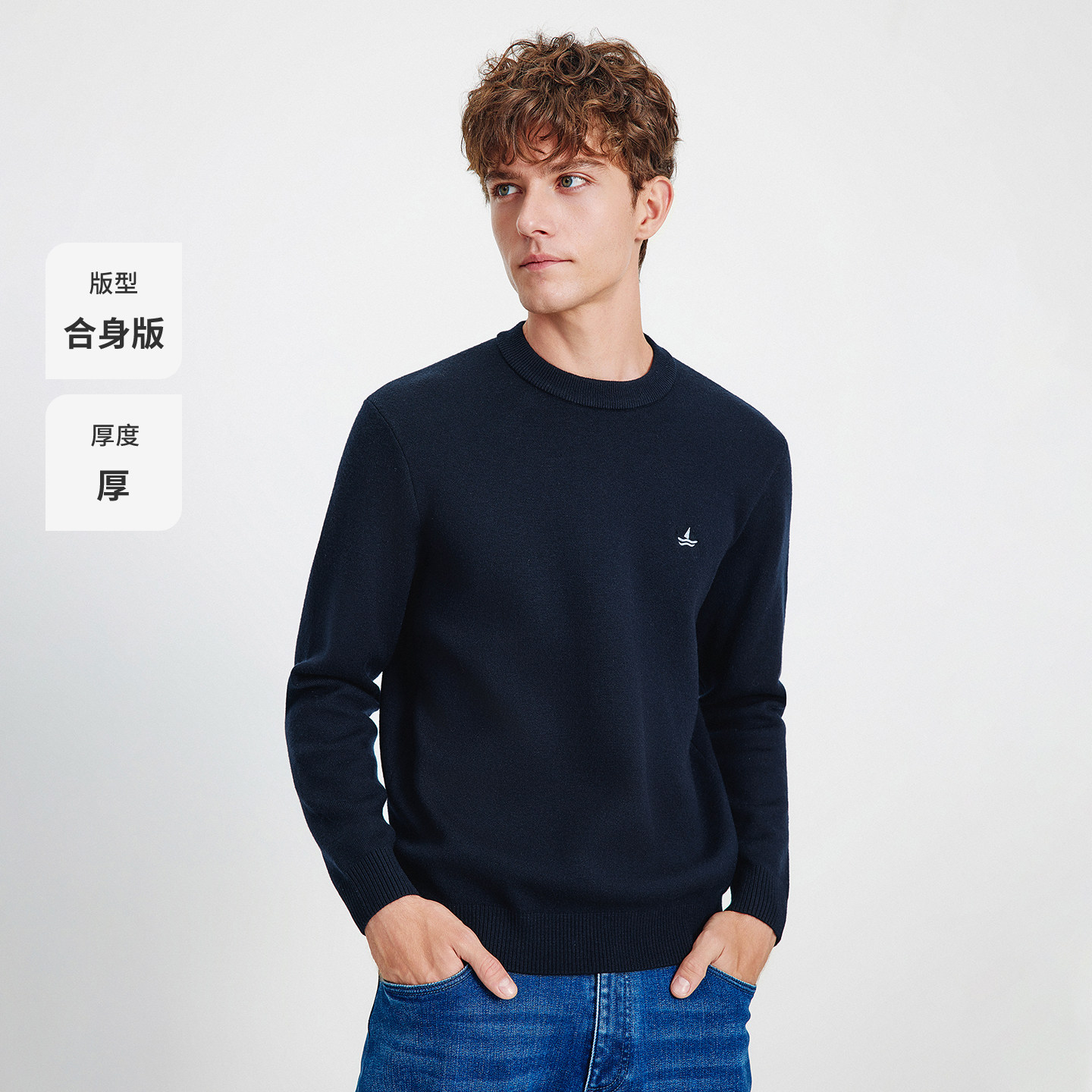 Navigare意大利小帆船老钱风加绒针织衫男冬季新款圆领套头毛衣