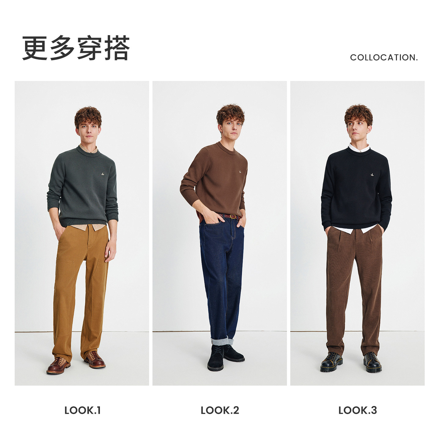 森马毛衫男冬季满版提花针织衫撞色毛衣宽松套头衫百搭提花潮-TK