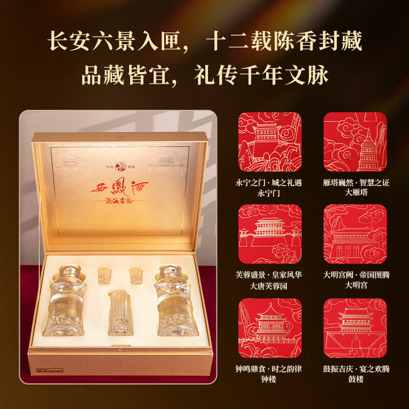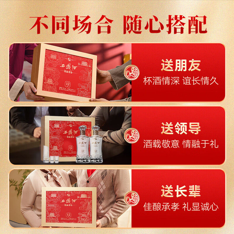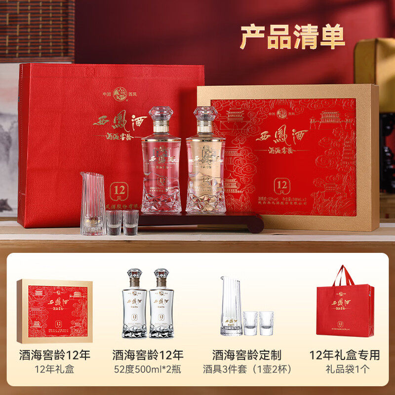西凤酒海窖龄12年52度凤香型高档白酒礼盒500ml*2婚宴送礼送长辈