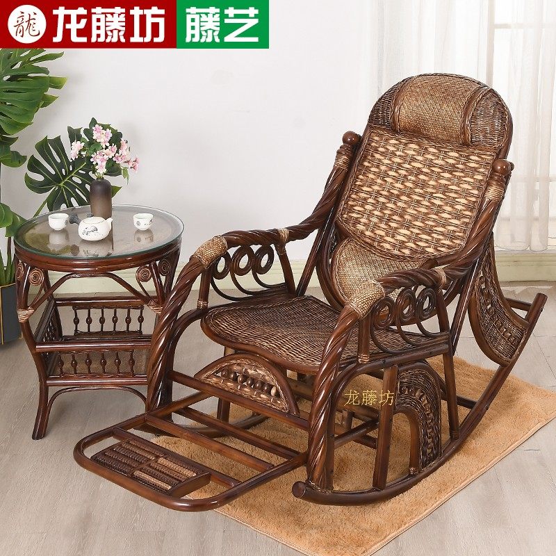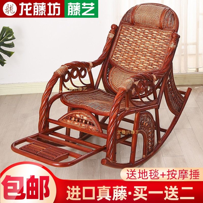 7T真藤摇摇椅藤椅成人阳台休闲躺椅坐垫老人午睡椅家用藤编织逍遥