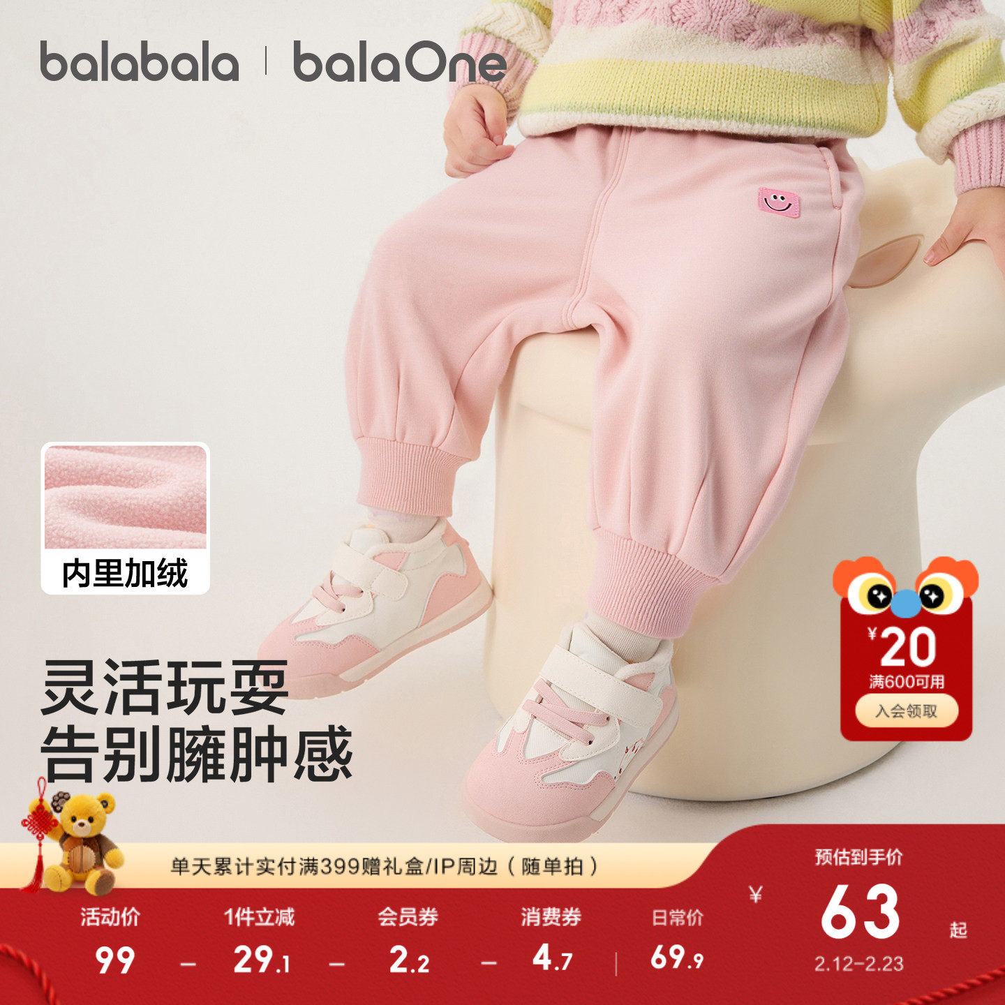 巴拉巴拉童装儿童宝宝加长裤绒男童女童2025冬装新款香蕉裤子加厚