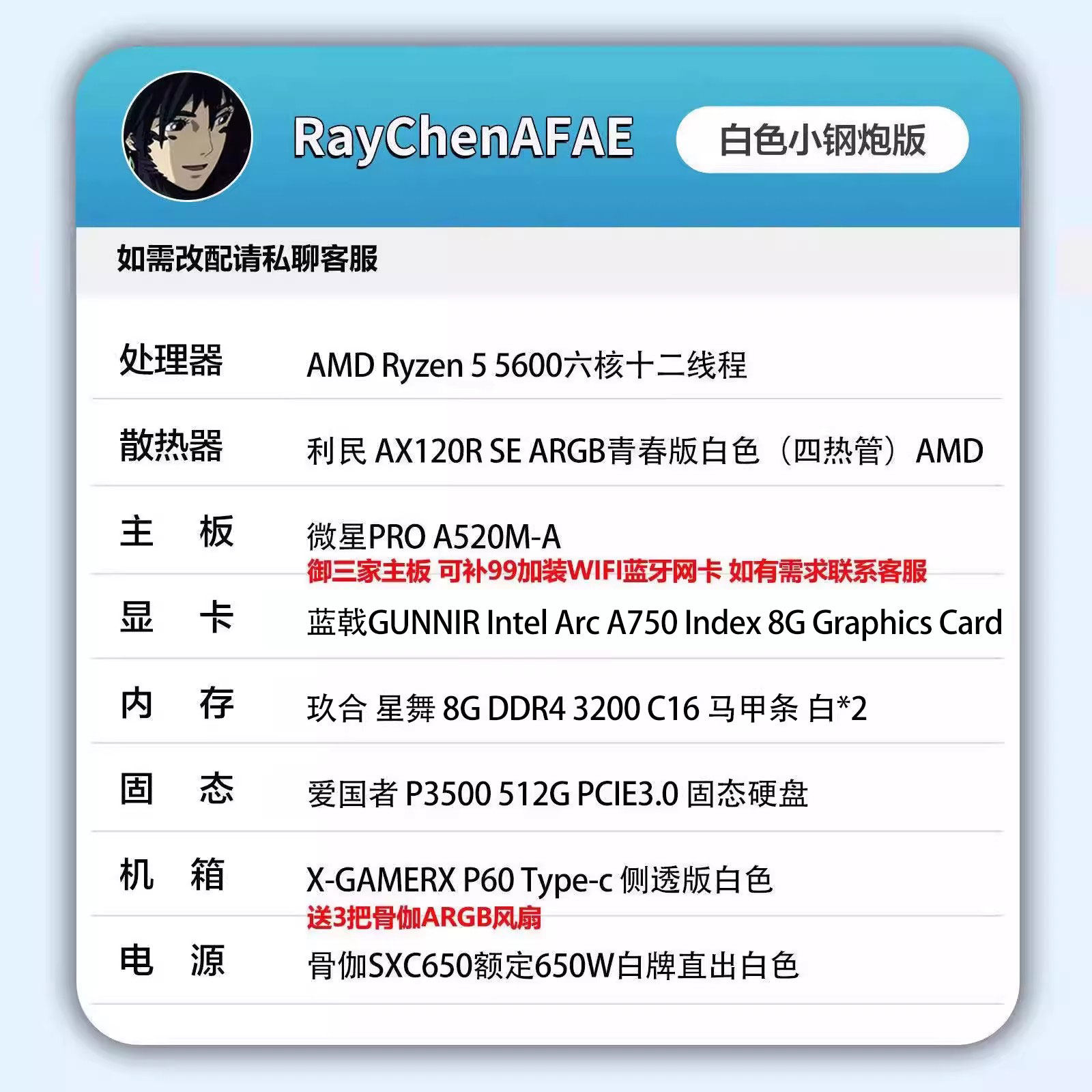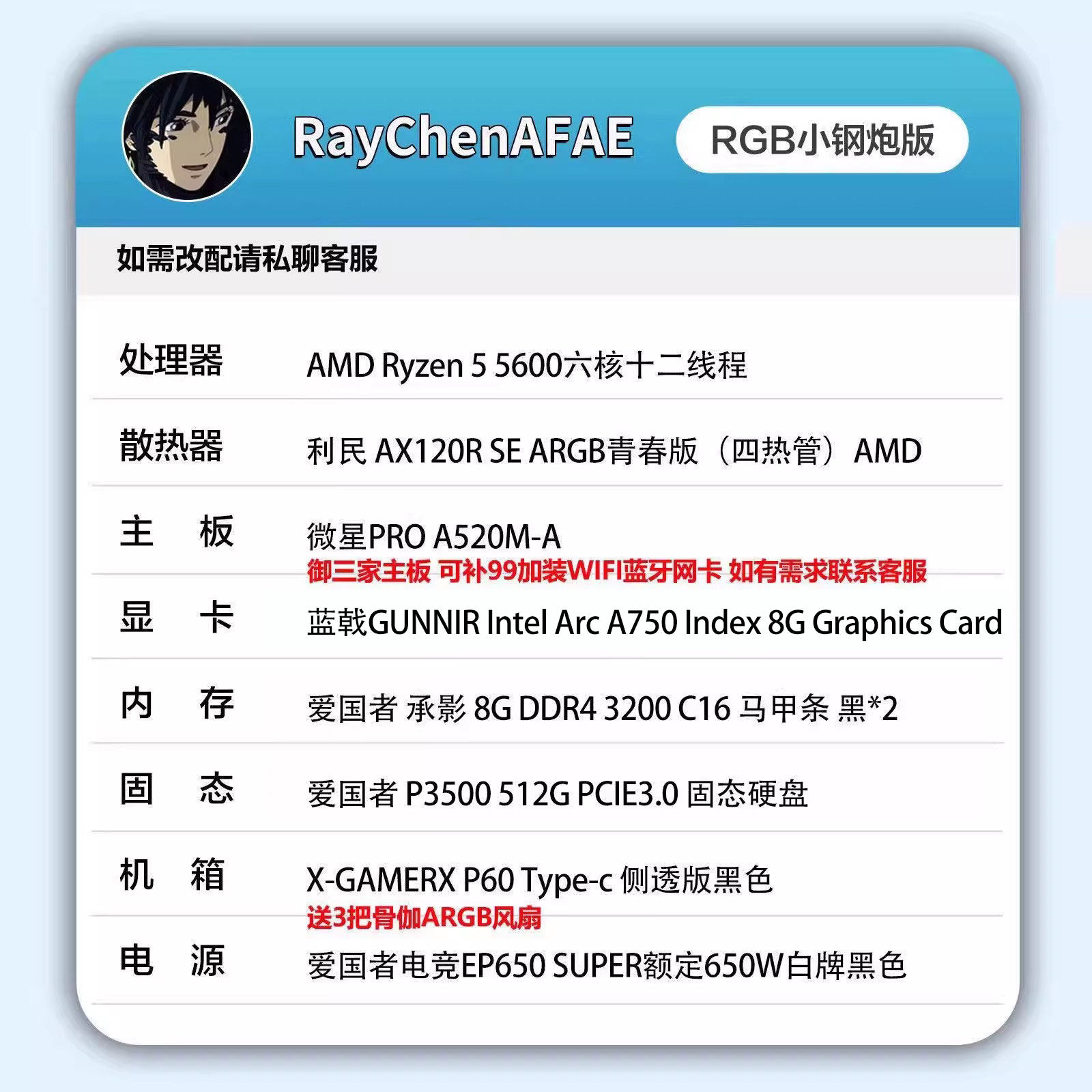 A750+5600 网游RGB小钢炮便携机箱 高性能DIY游戏生产力电脑主机