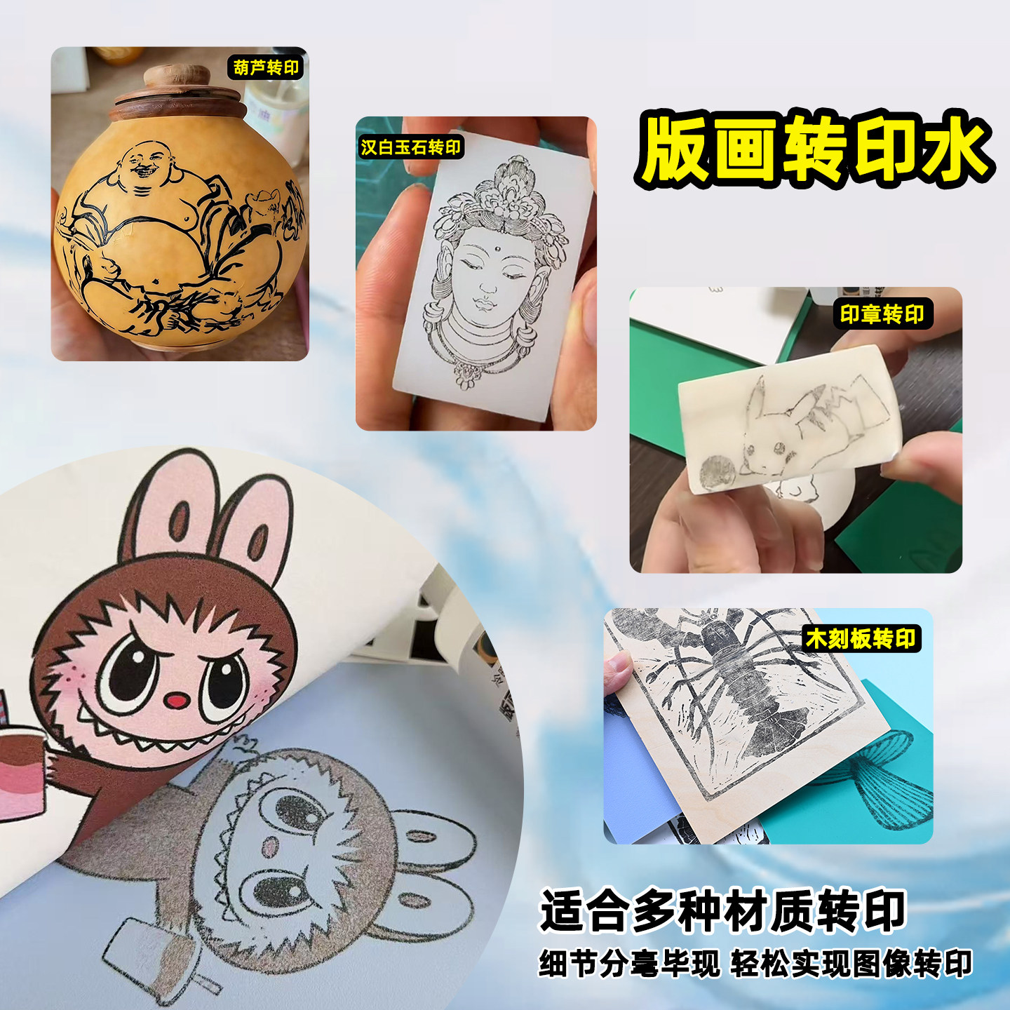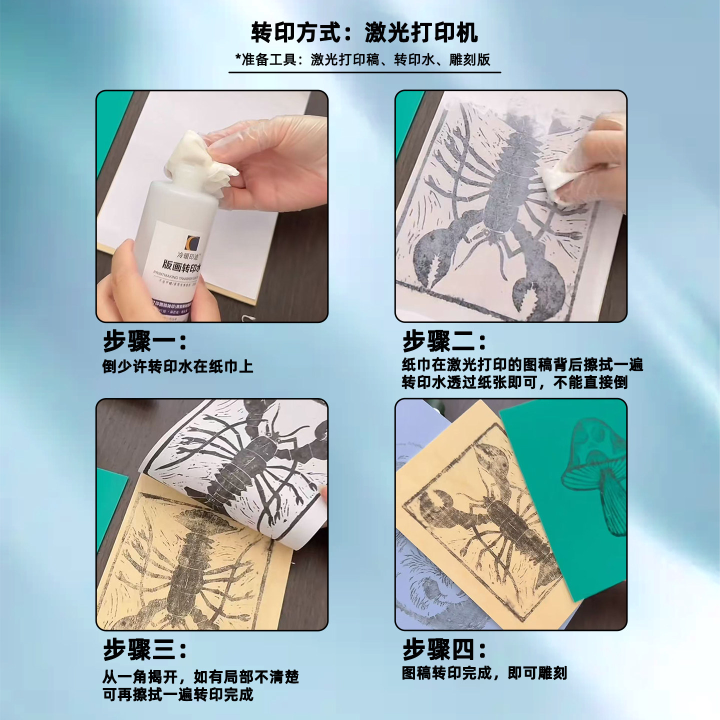 胶板版画素材转印水无苯无甲醛雪弗板椴木板橡皮章图案转印水
