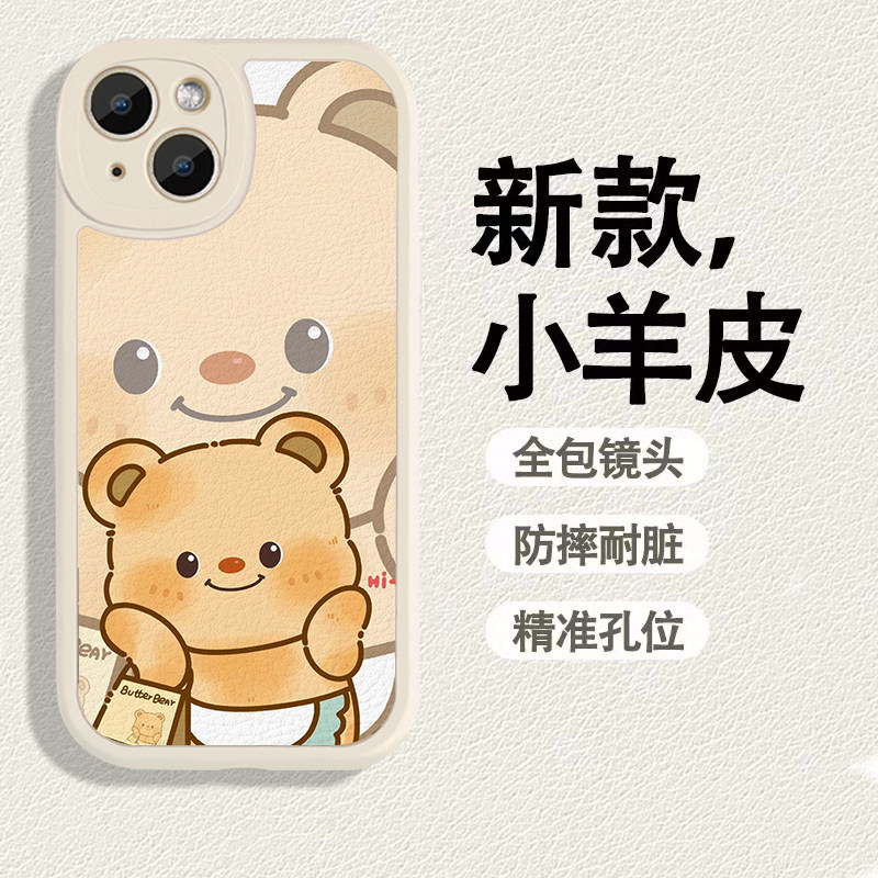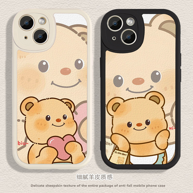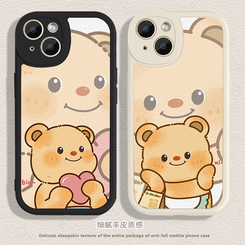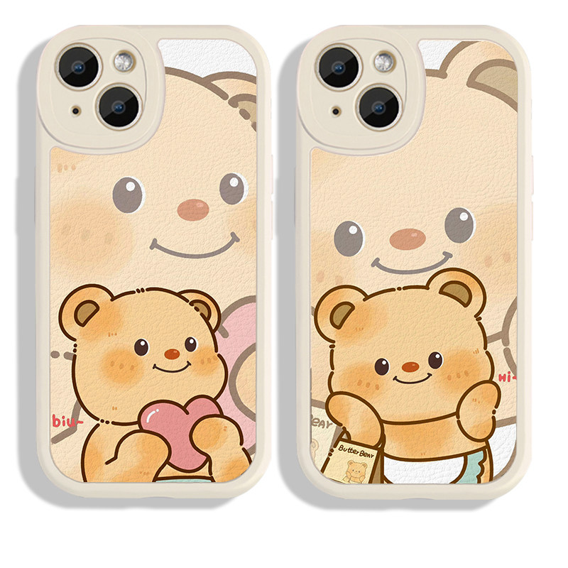 黄油小熊情侣手机壳高级感小众一对任意机型适用于苹果15promax小羊皮小米14华为mate60荣耀200vivox100oppo