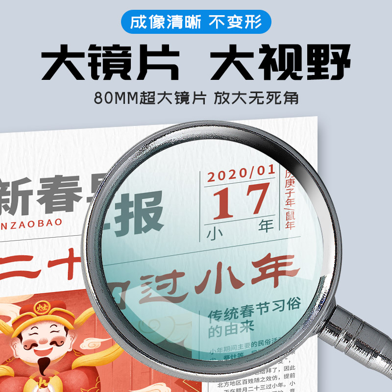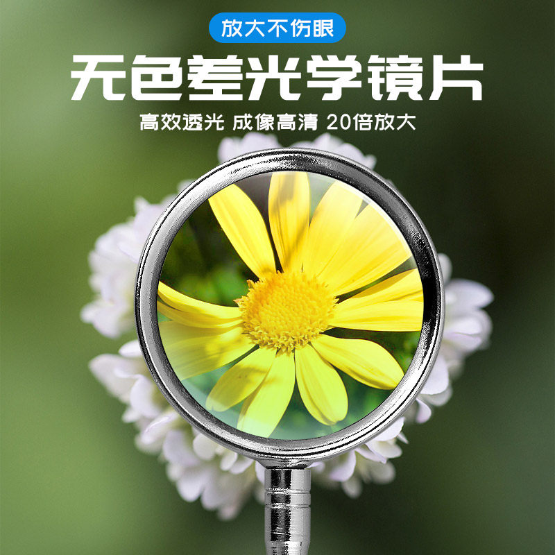 放大镜家用高清10倍老人阅读儿童科学光学手持式20倍放大镜片户外学生用高倍便携式扩大镜维修用文玩鉴定专用