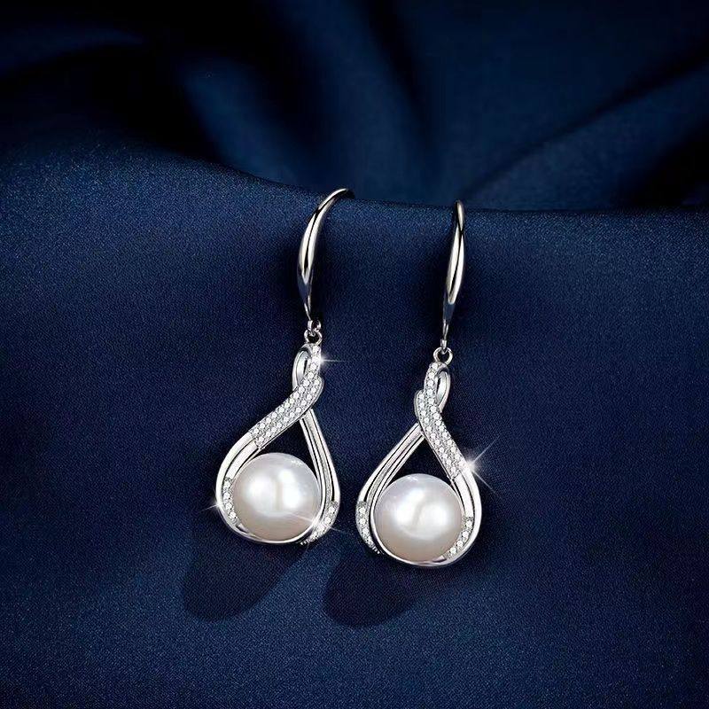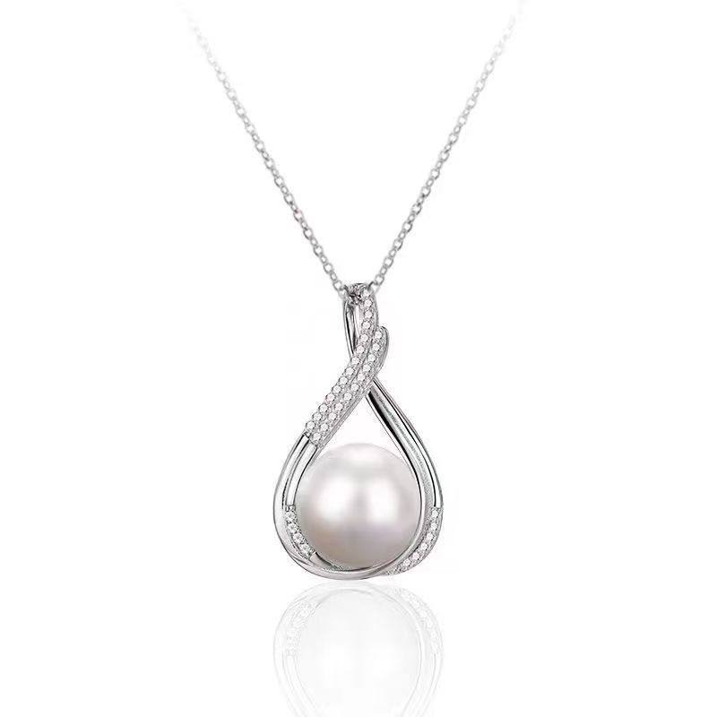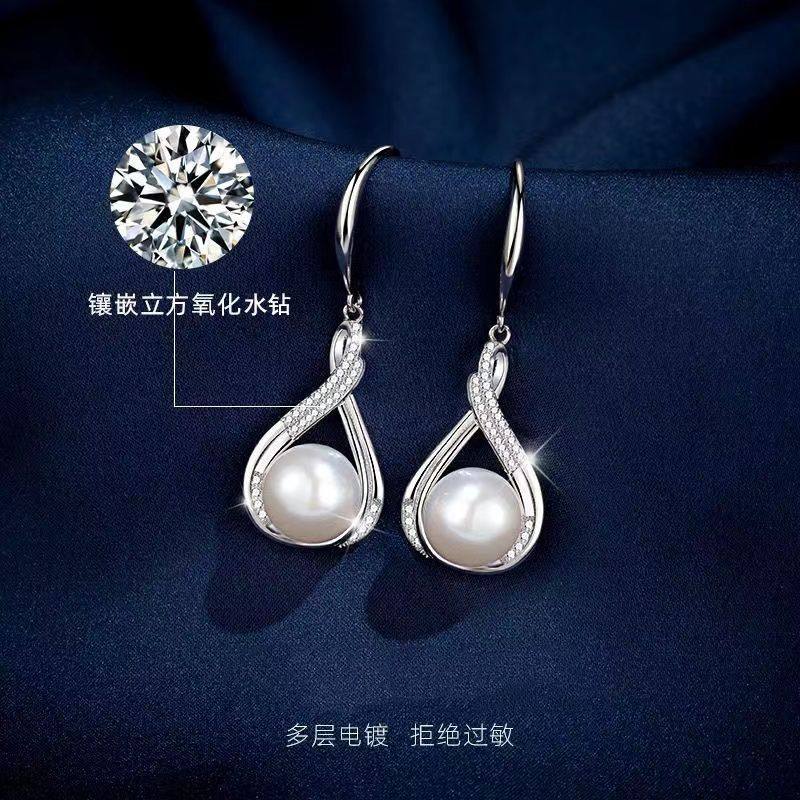 天然珍珠项链吊坠女时尚简约饰品年轻款925针耳环锁骨链两件套装