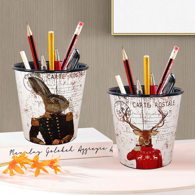 铁艺多功能笔筒创意美式复古轻奢高级感桌面文具美术生毛笔收纳桶