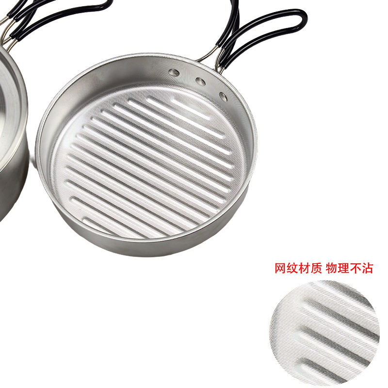 跨境户外锅具野营不粘锅304露营套装野餐可折叠便携煎锅汤锅煮锅