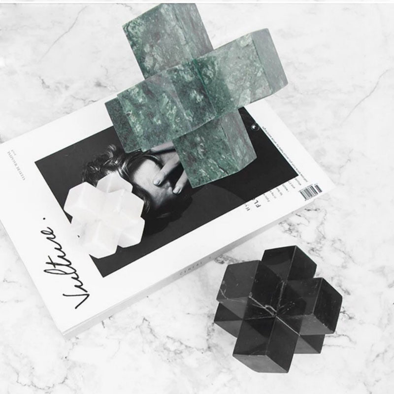 绿色积木北欧白色大理石十字架摆件简约现代书房镇纸美间软装饰品