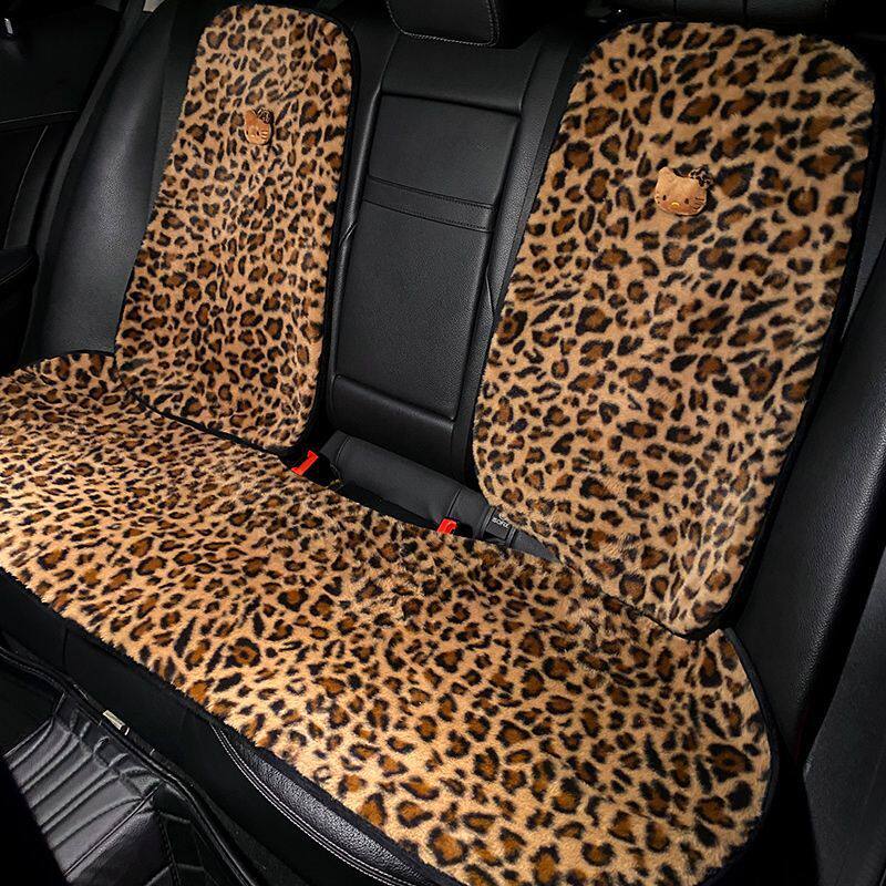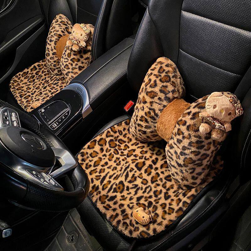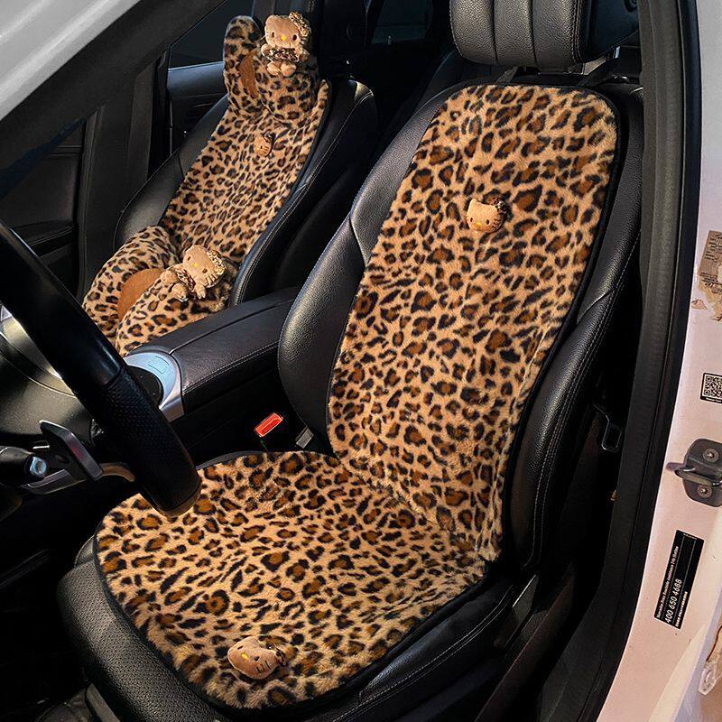 汽车坐垫冬季毛绒豹纹座椅座垫女生网红可爱KT猫头冬天保暖三件套