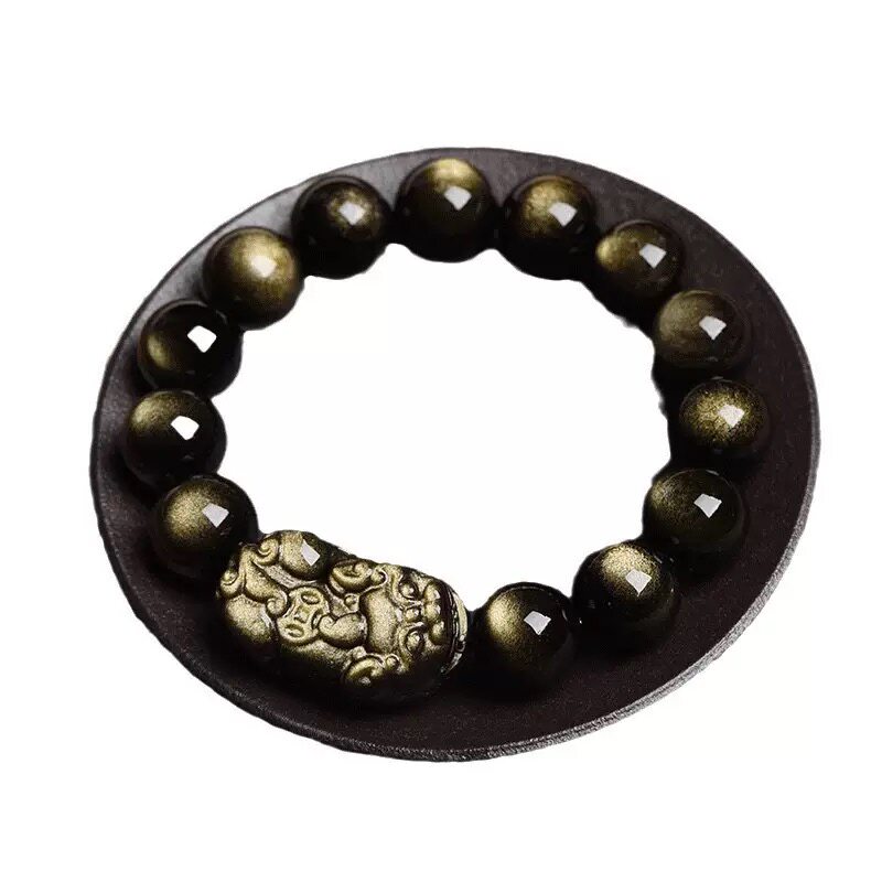 天然黑曜石本命年手链钱币貔貅生肖金曜石佛珠手串情侣礼物招财