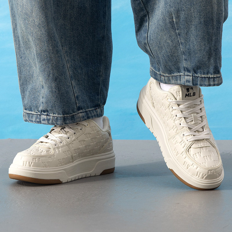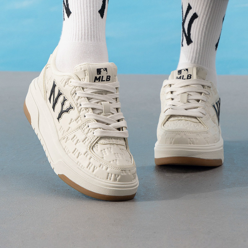 MLB官方 运动鞋低帮厚底休闲鞋情侣板鞋复古老花学长鞋3ASXE015N