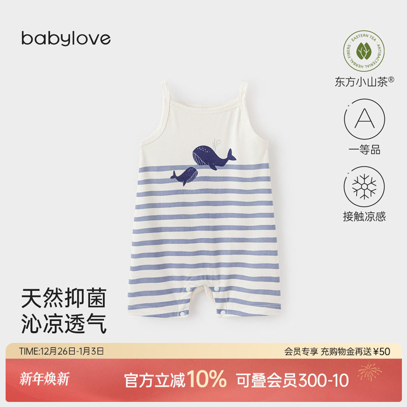 babylove婴儿吊带连体衣夏季莫代尔棉清凉宝宝哈衣卡通条纹夏装