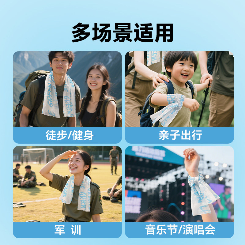 湖水清凉感湿巾跑步便携运动夏季军训消暑用去汗降温冰感户外清洁