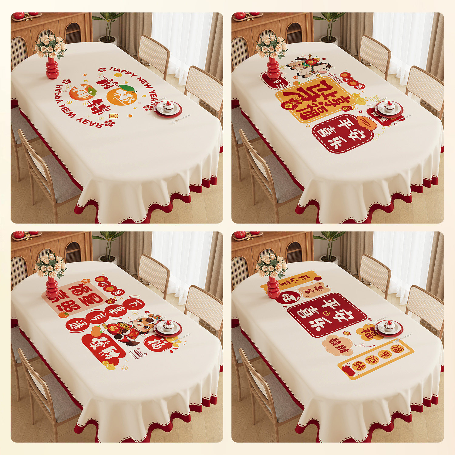 新年桌布防水防油免洗红色氛围感餐桌布轻奢高级感马年茶几布防烫