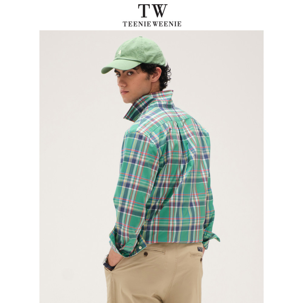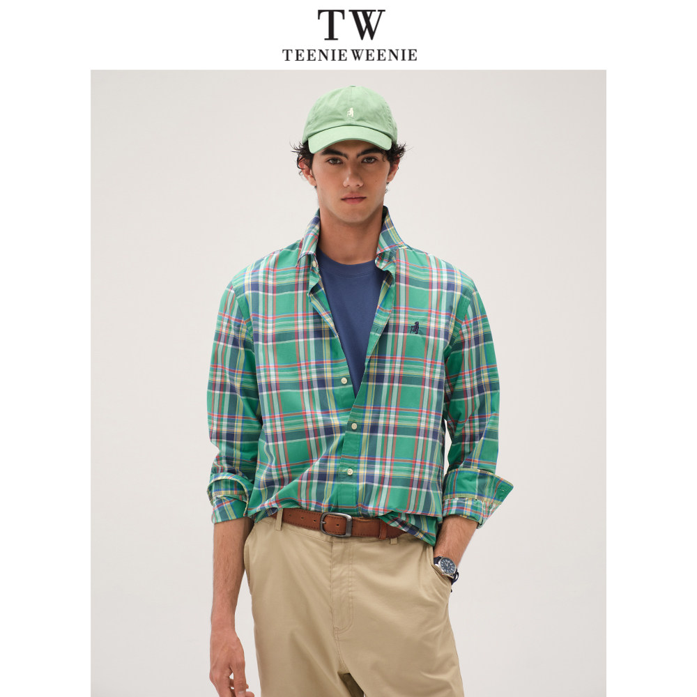 TeenieWeenie小熊男装长袖衬衫2025春季新款学院潮酷时尚格纹衬衣